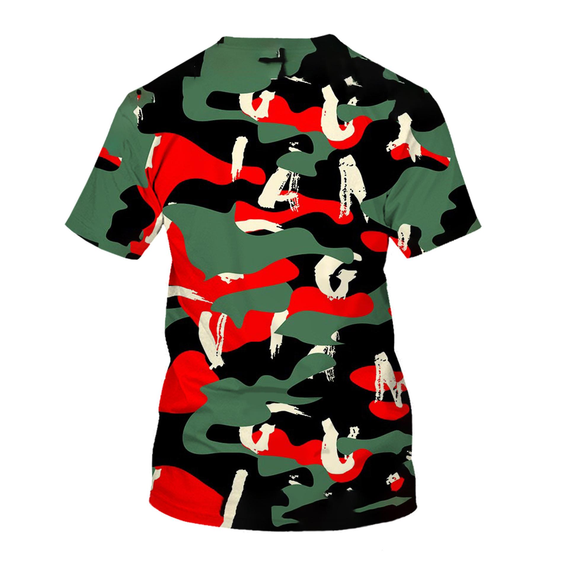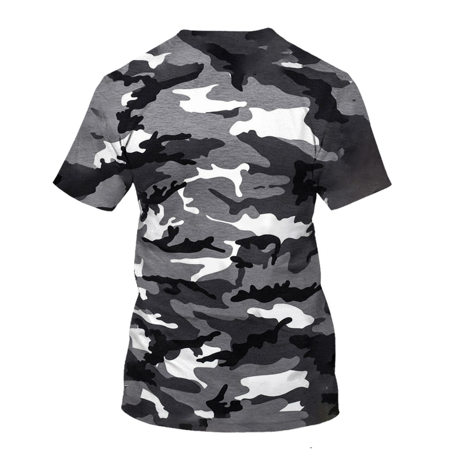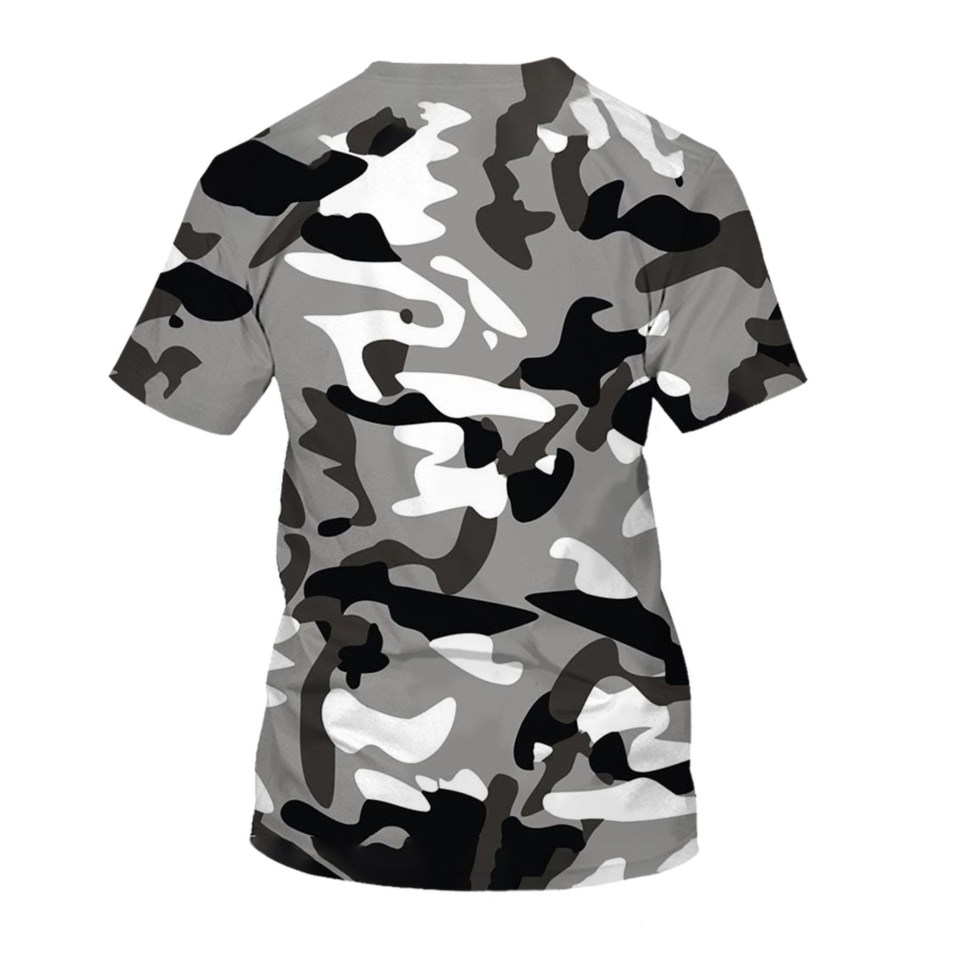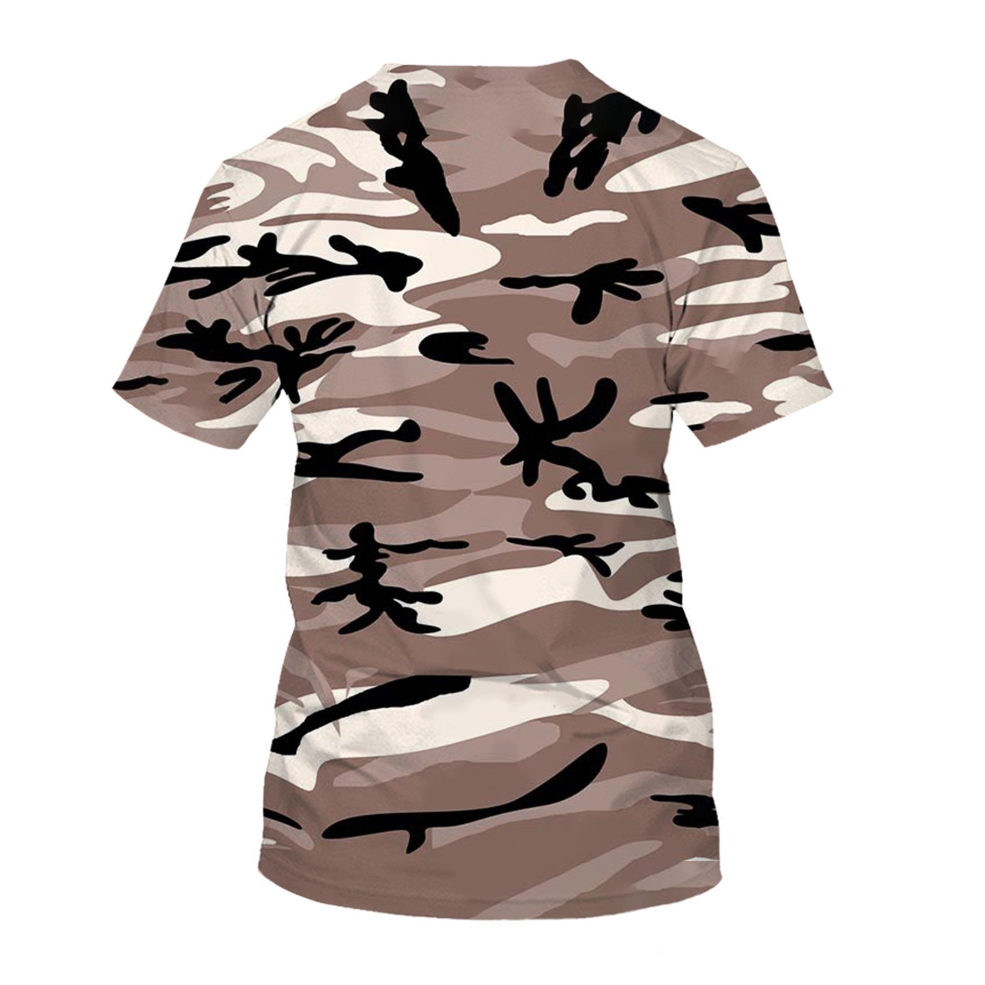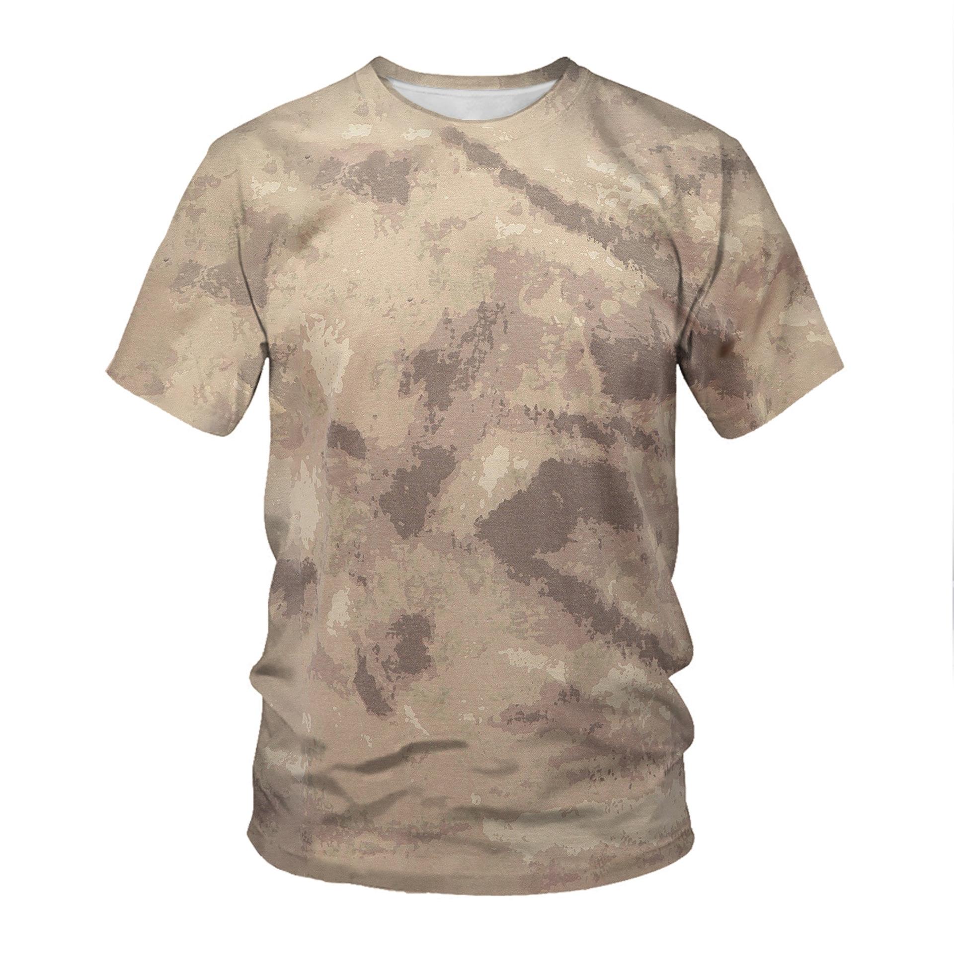 Camiseta de manga corta de verano para hombre, con estampado digital 3D de camuflaje, cuello redondo, holgada, de media manga