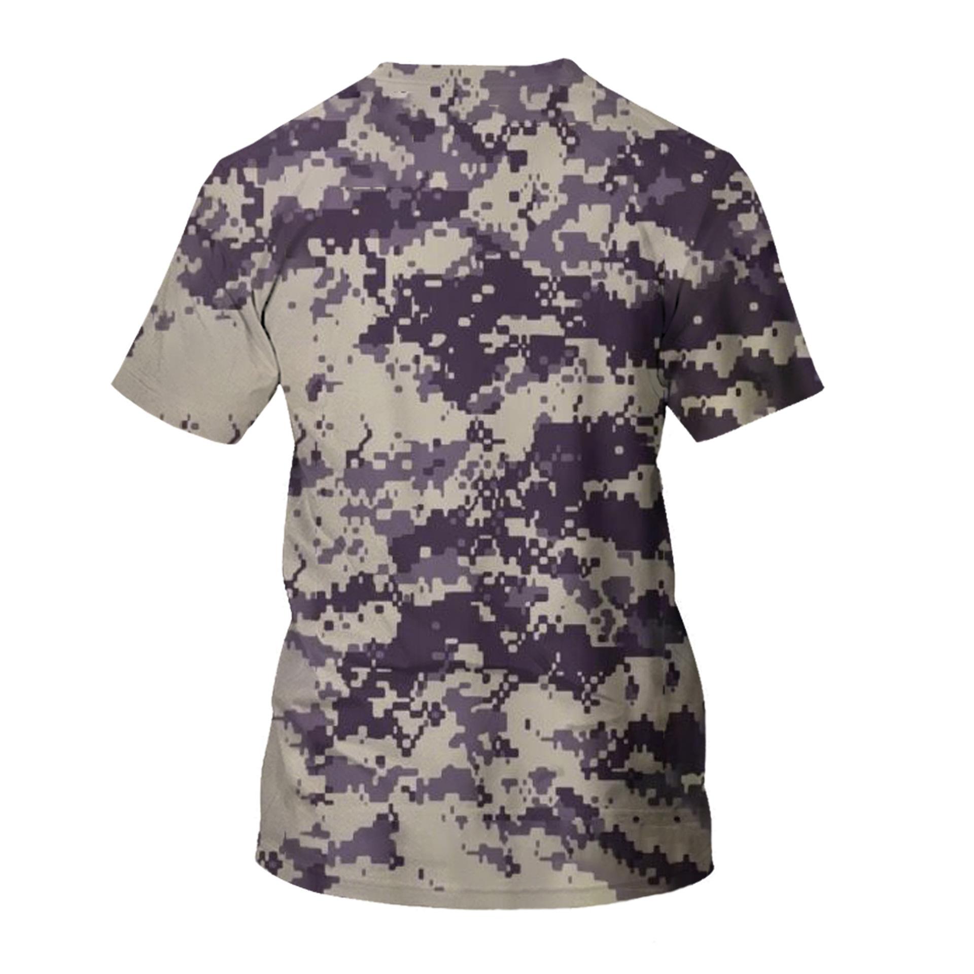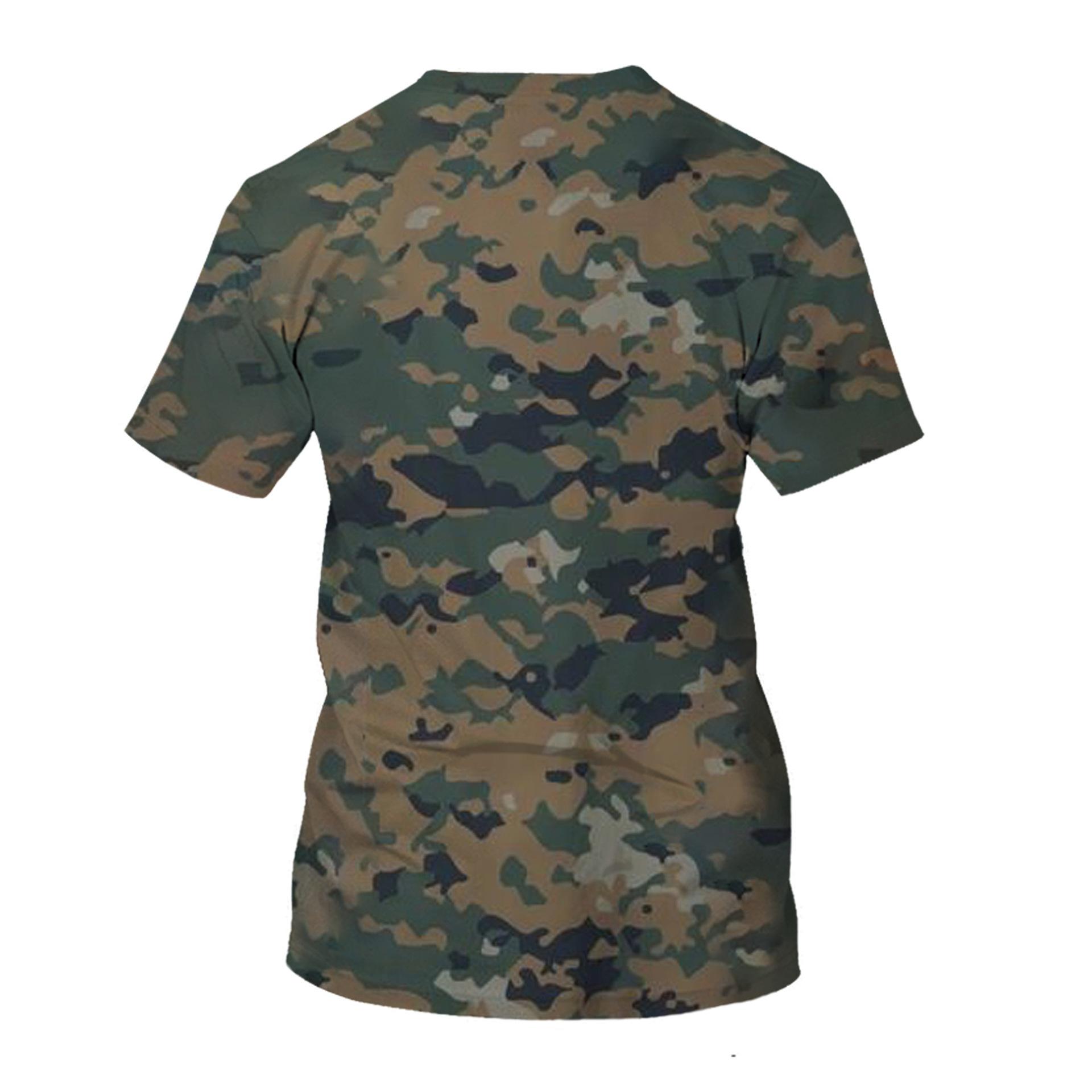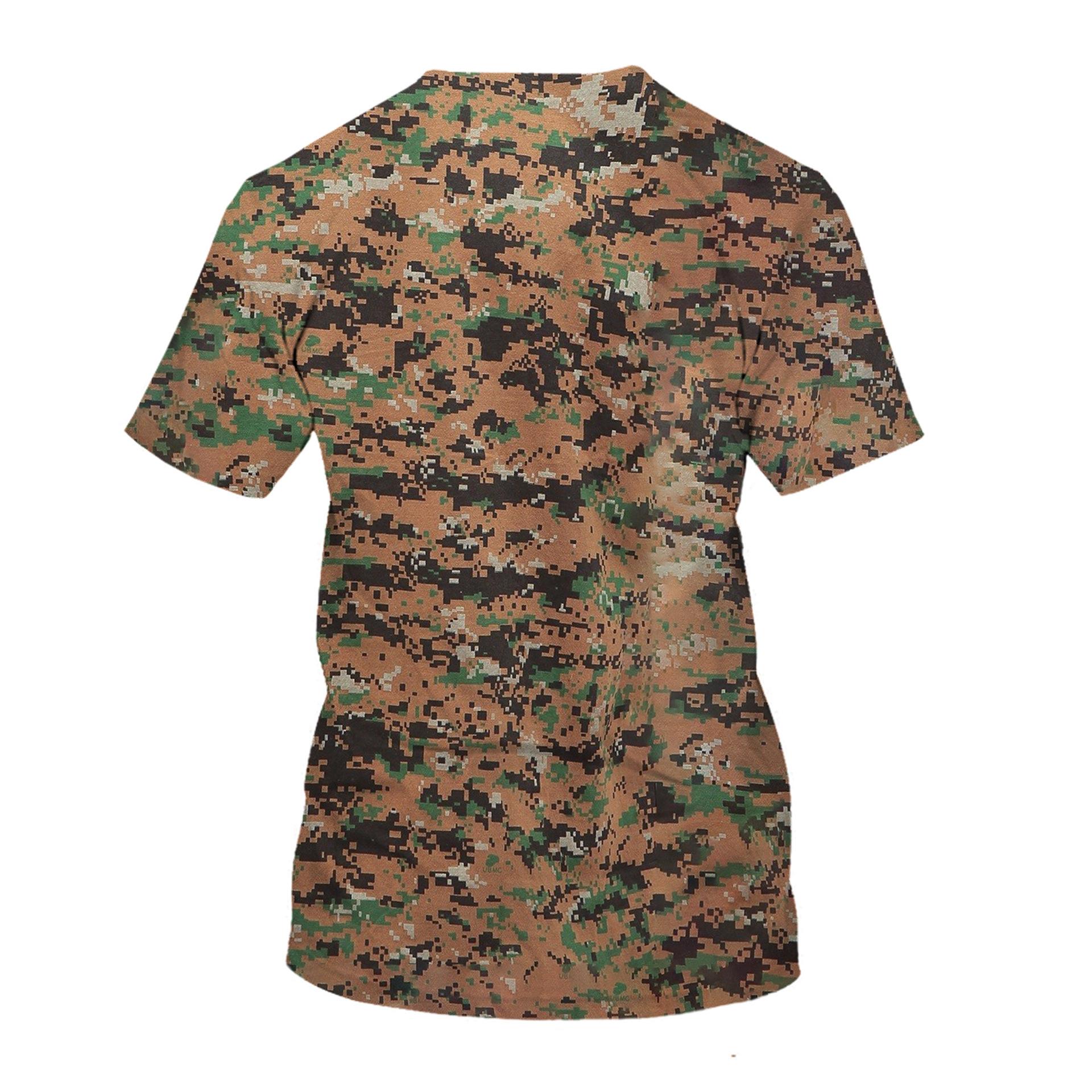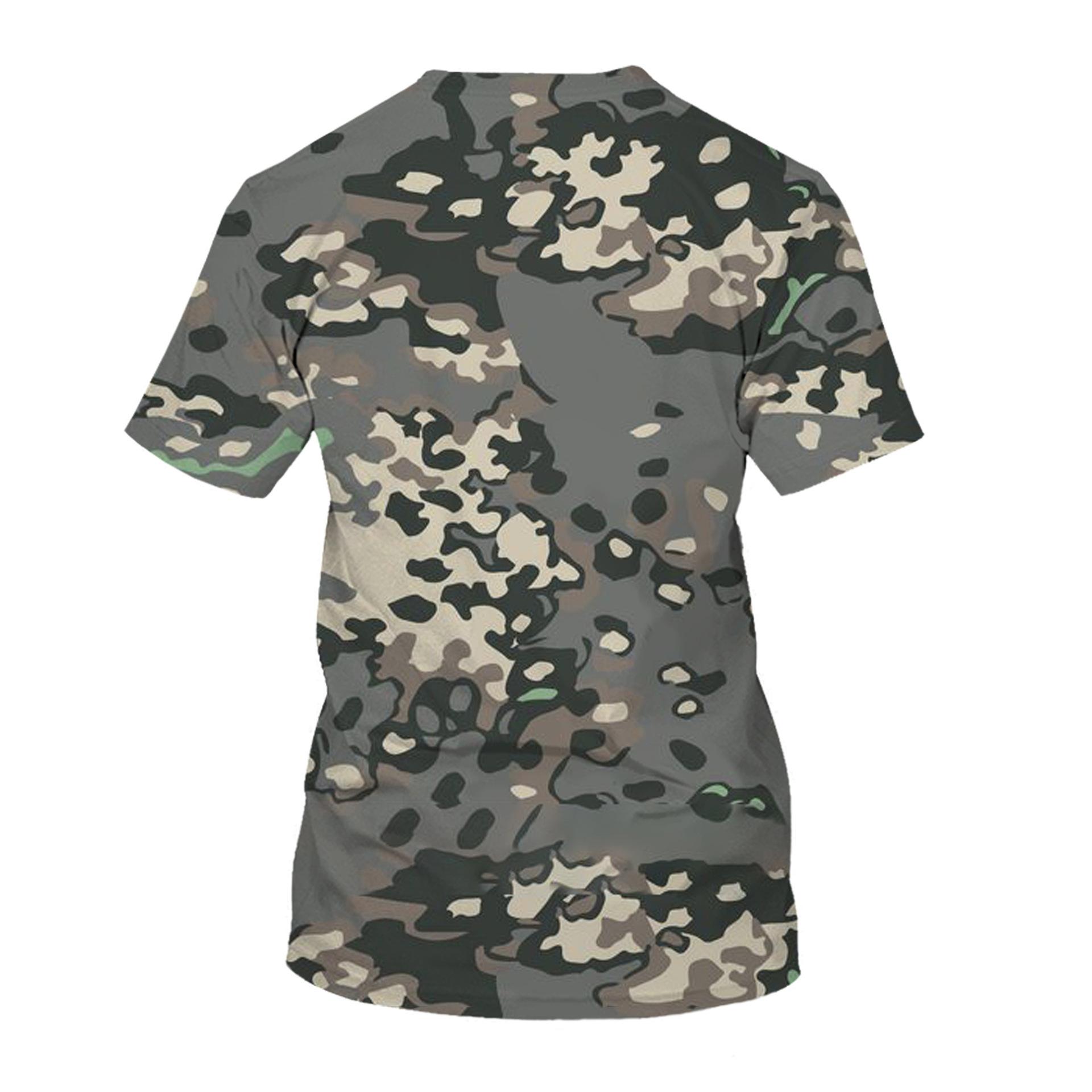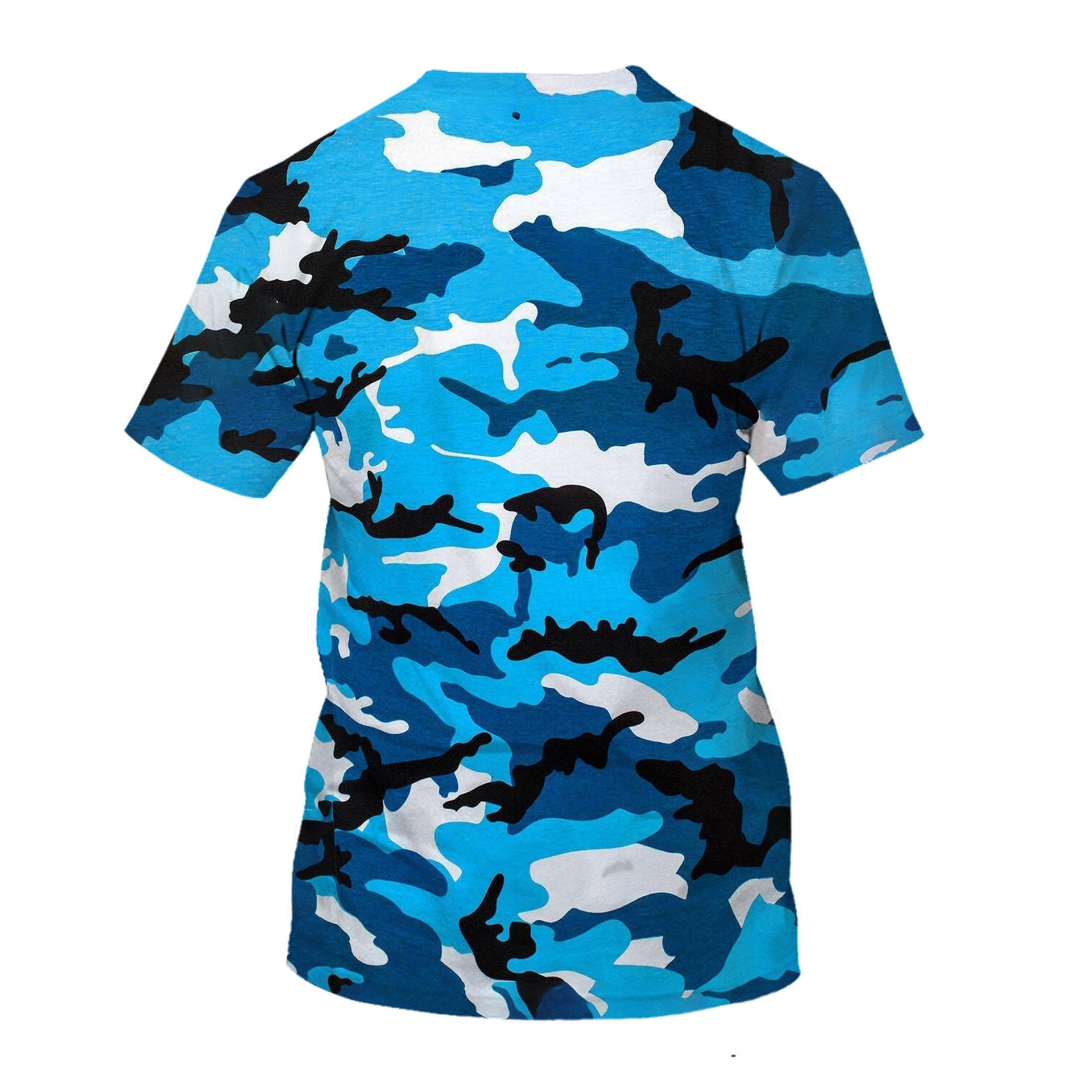 Camiseta de manga corta de verano para hombre, con estampado digital 3D de camuflaje, cuello redondo, holgada, de media manga