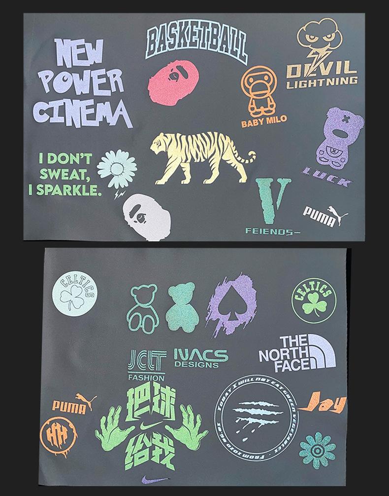 Trae de vuelta color adhesivo reflectante blanco y negro rojo amarillo azul verde reflectante plateado película térmica reflectante gris prenda transferencia térmica película para letras