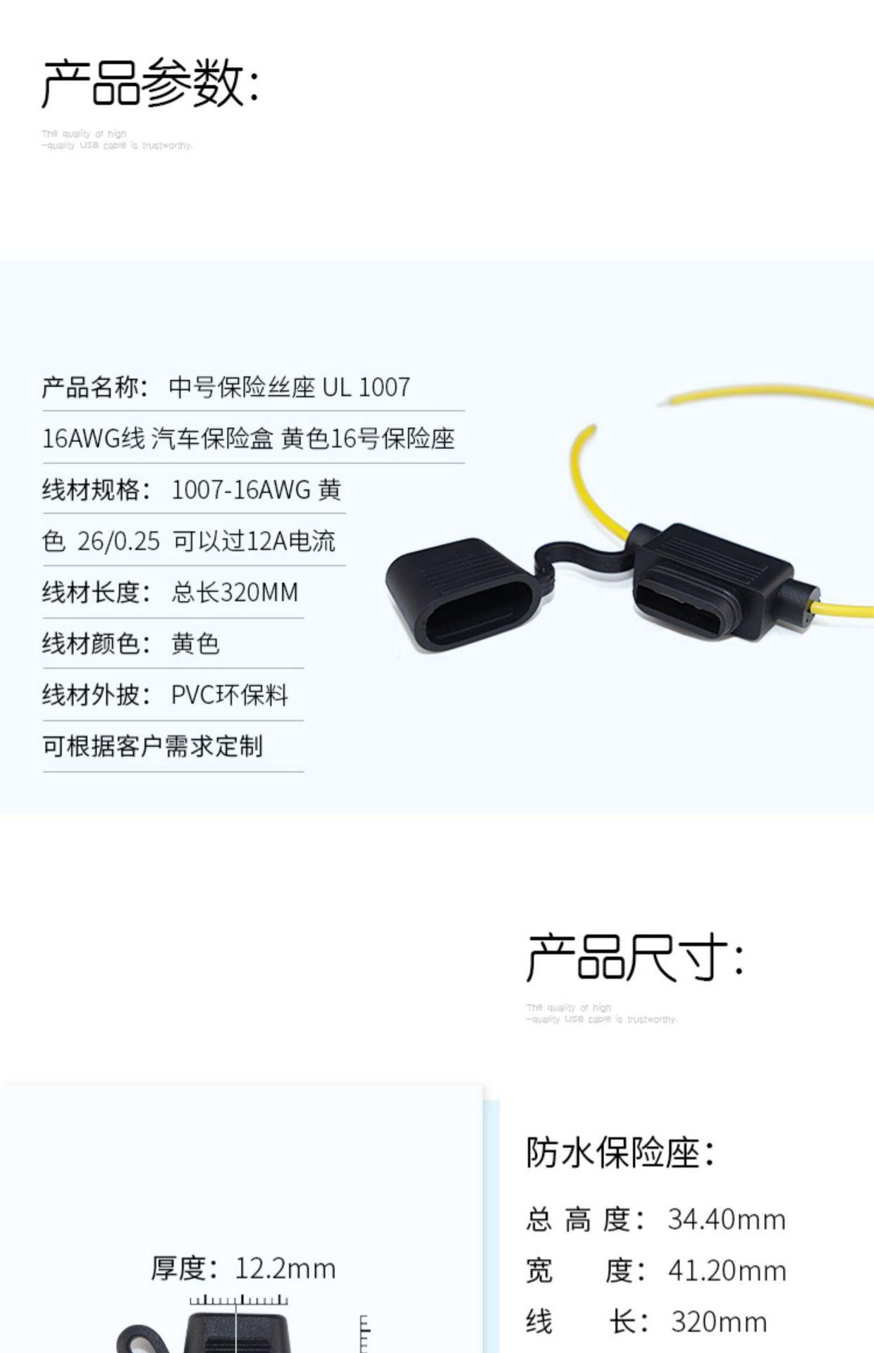 Portafusibles mediano Kebaolong 1007, caja de fusibles para automóvil con cable 16 AWG, amarillo, 16 portafusibles de 12 A
