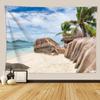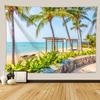 Tapiz con diseño de palmera y paisaje costero para colgar en la pared, toalla de playa