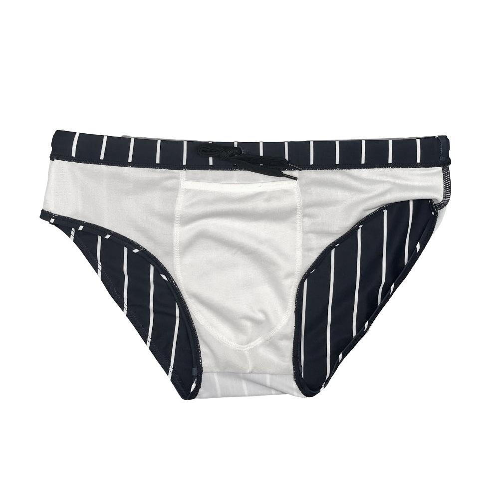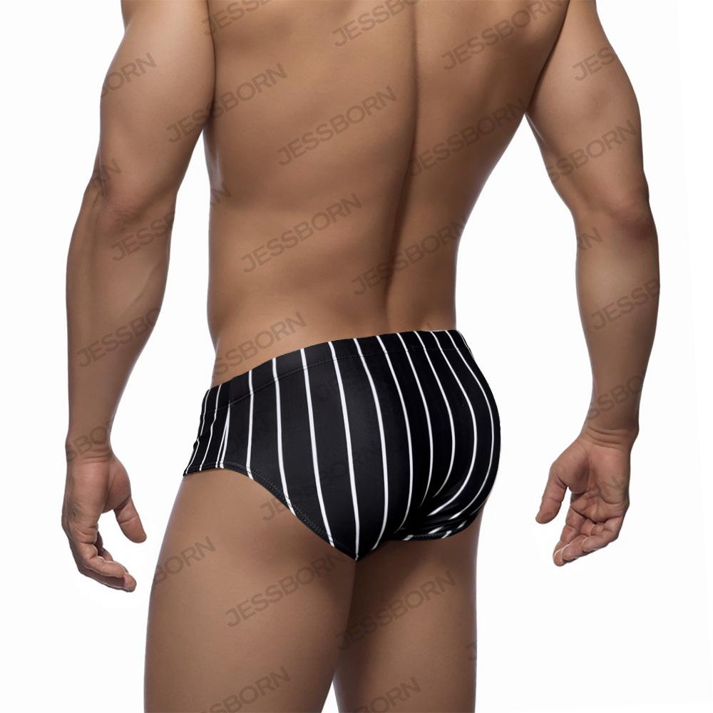 JESSBORN calzoncillos para hombre cintura baja sexy traje de baño para playa aguas termales tendencia de moda estampado de línea vertical negro