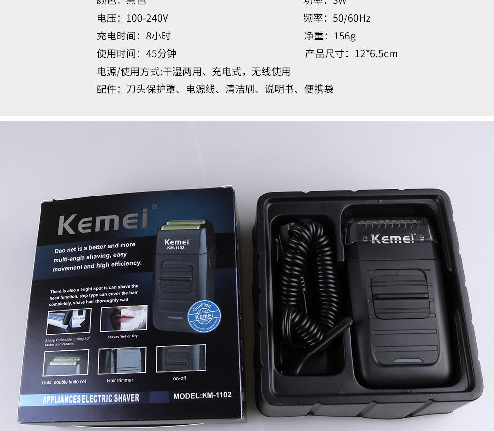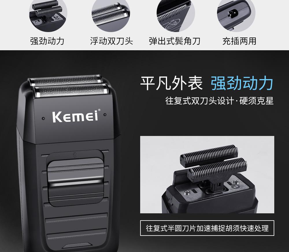 KM-1102 Afeitadora KEMEI de doble malla reciprocante Afeitadora KEMEI para cabeza calva afeitadora de patillas de doble malla