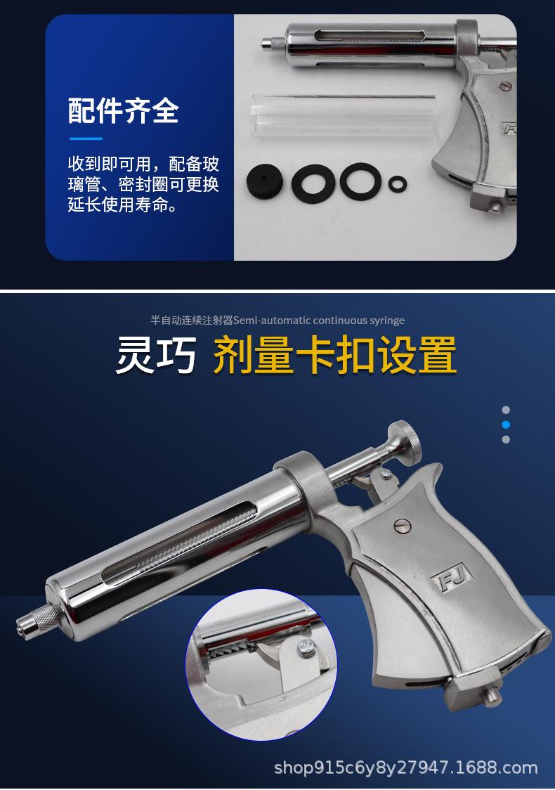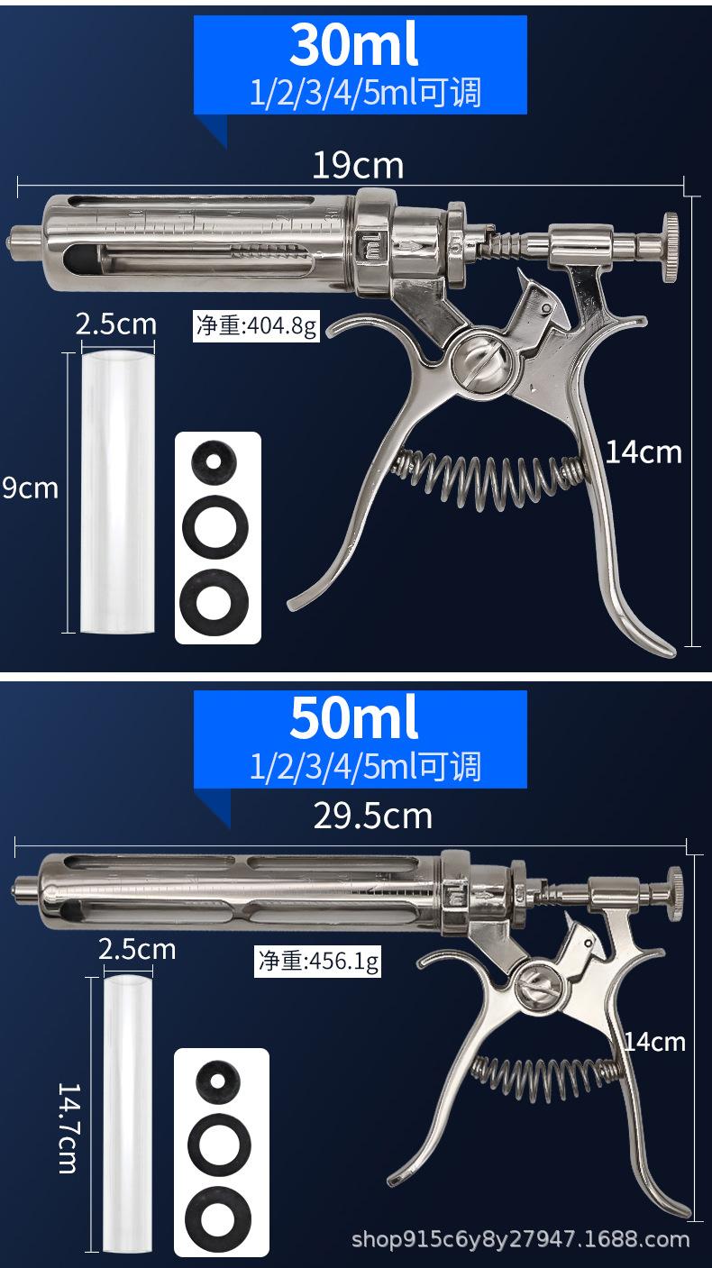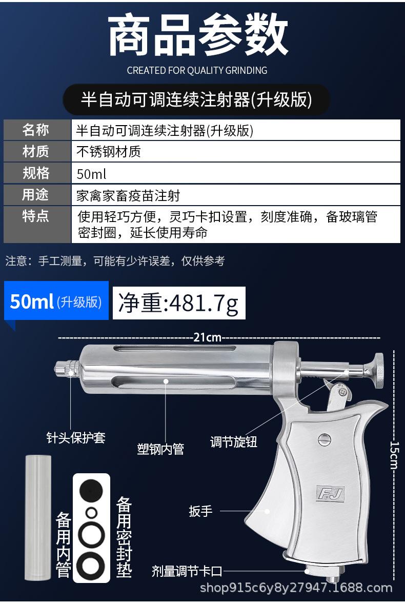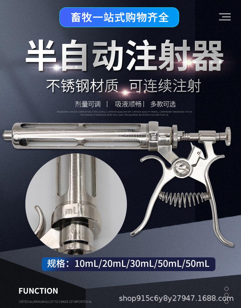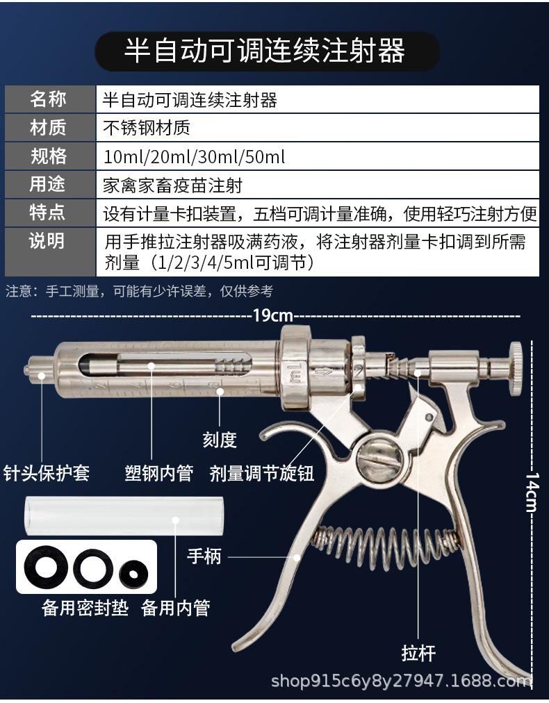 Jeringa continua semiautomática veterinaria ajustable, aguja de inyección de vacuna de 50 ml para ganado porcino y ovino.