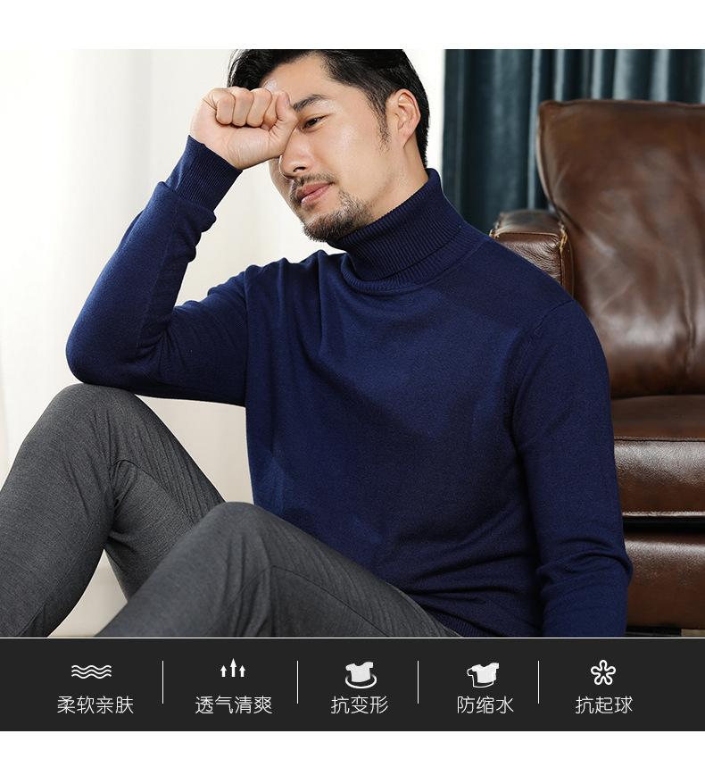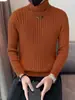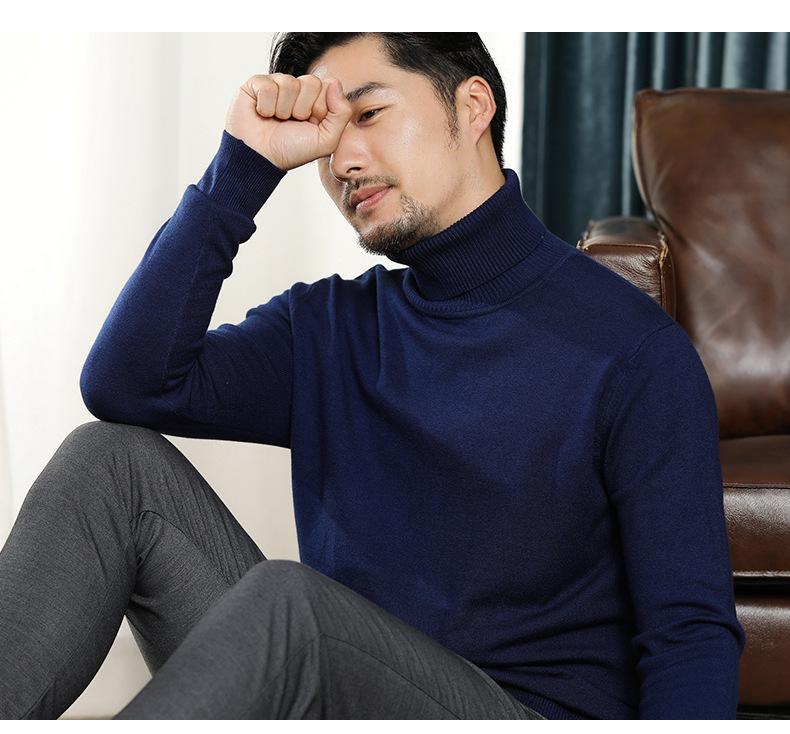Suéter de cuello alto informal para hombre, de color liso, combinable con todo, ajustado, grueso y cálido, para otoño e invierno