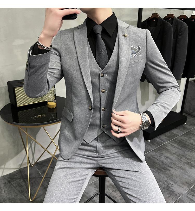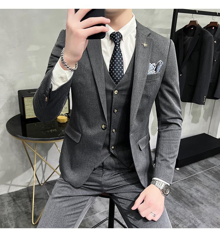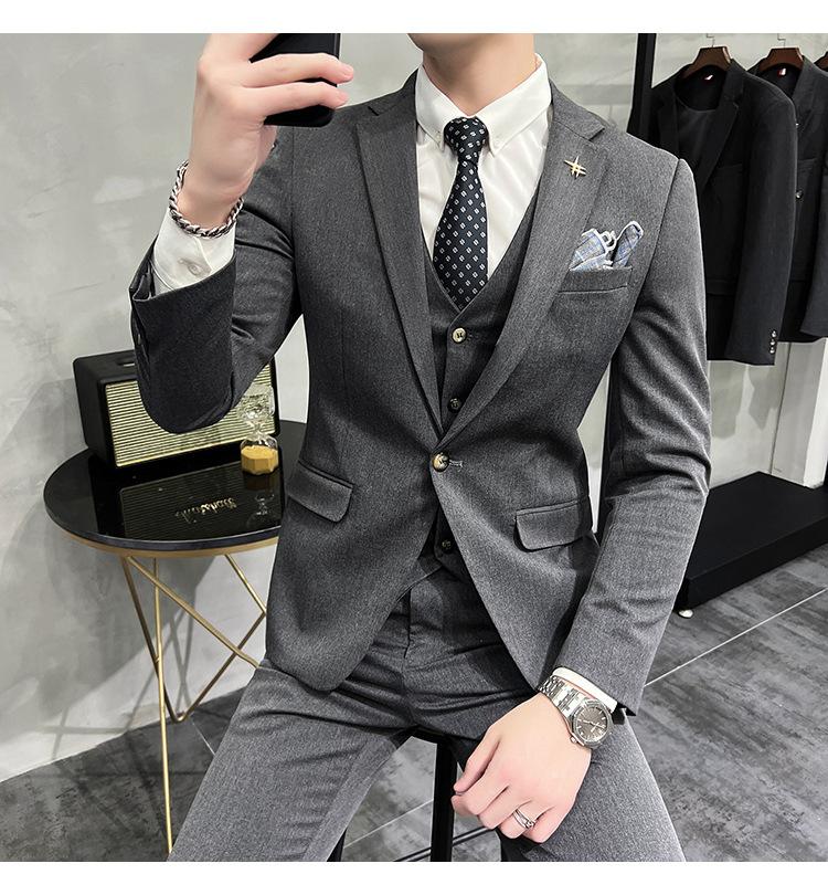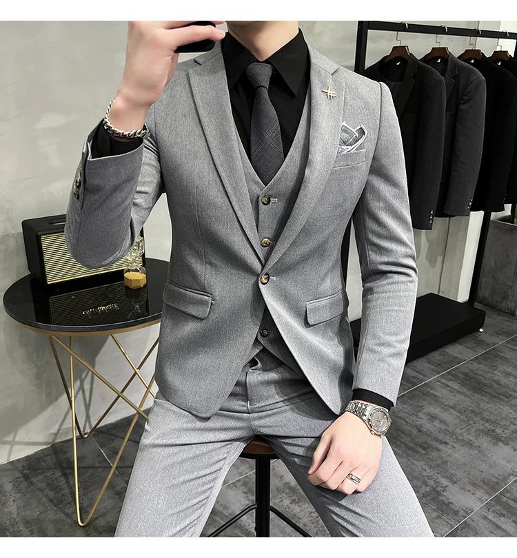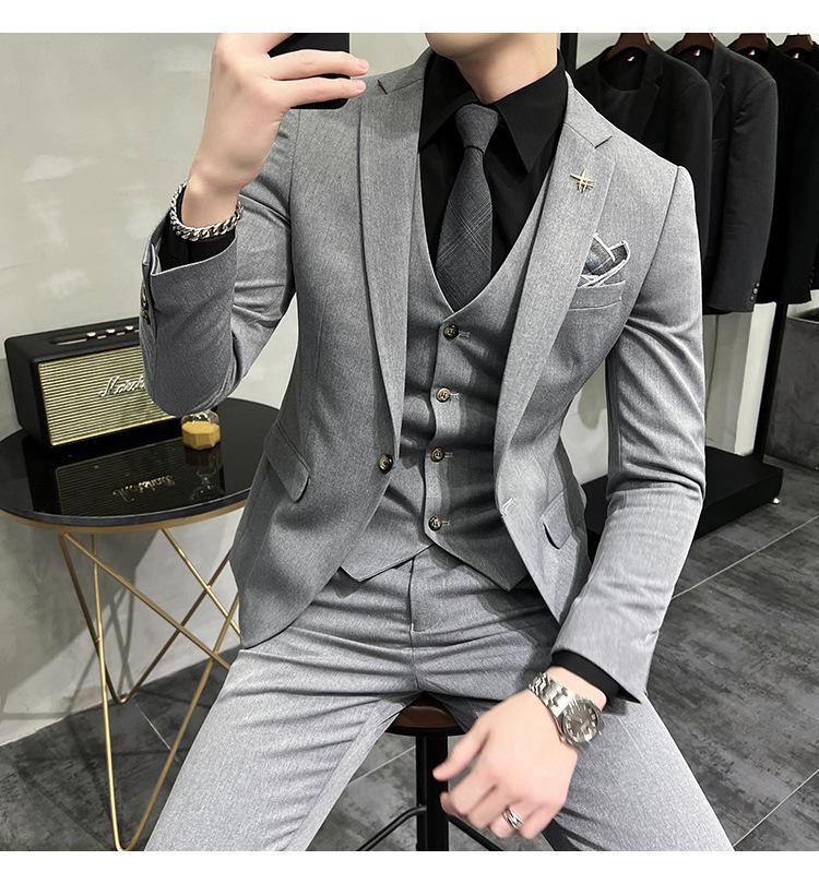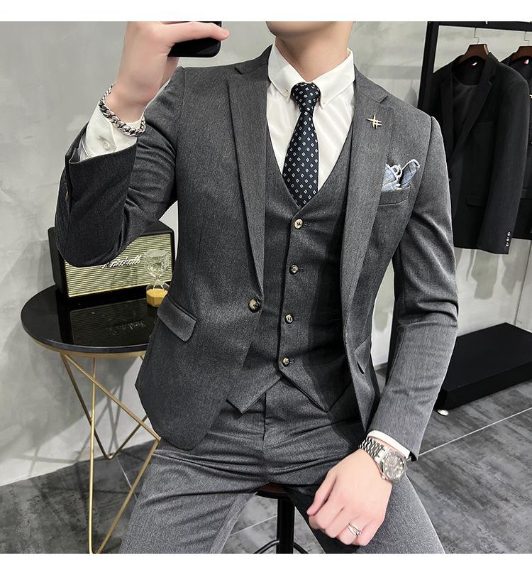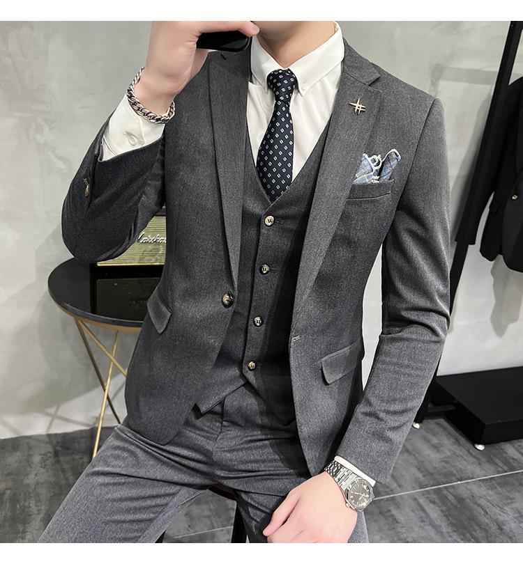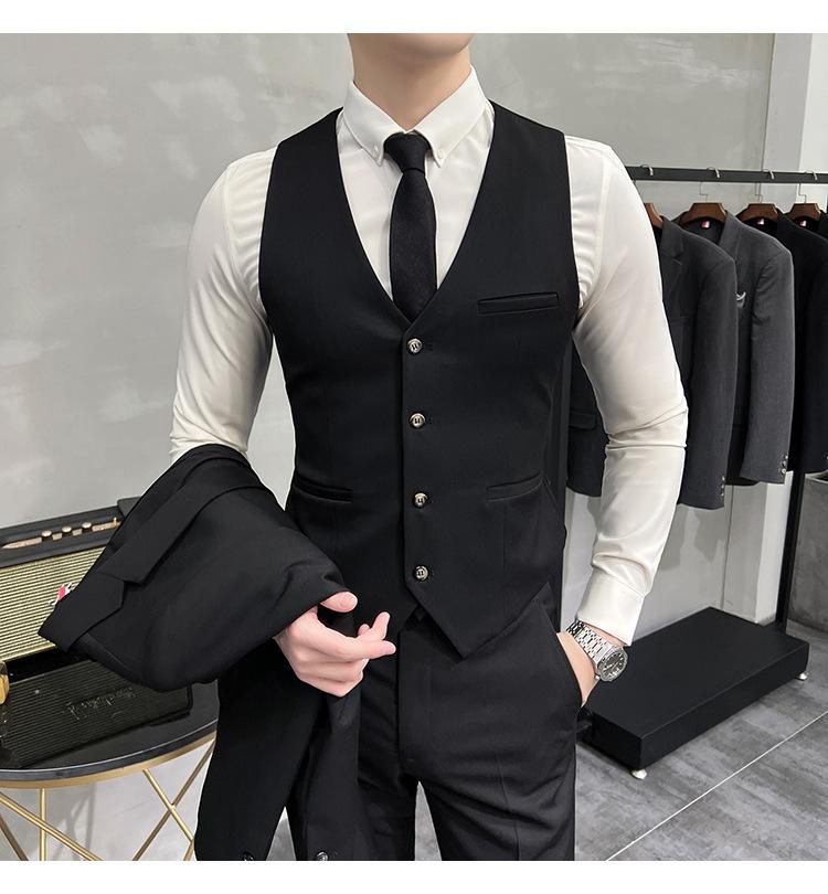 Conjunto de traje informal de negocios para hombre, traje formal de tres piezas, estilo coreano, corte entallado, para padrino de boda y novio.
