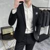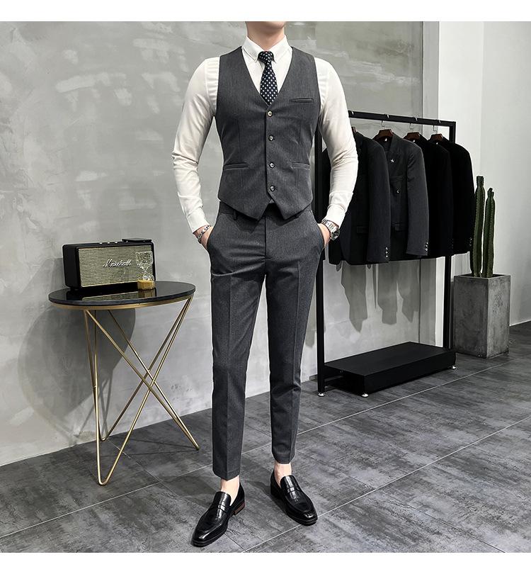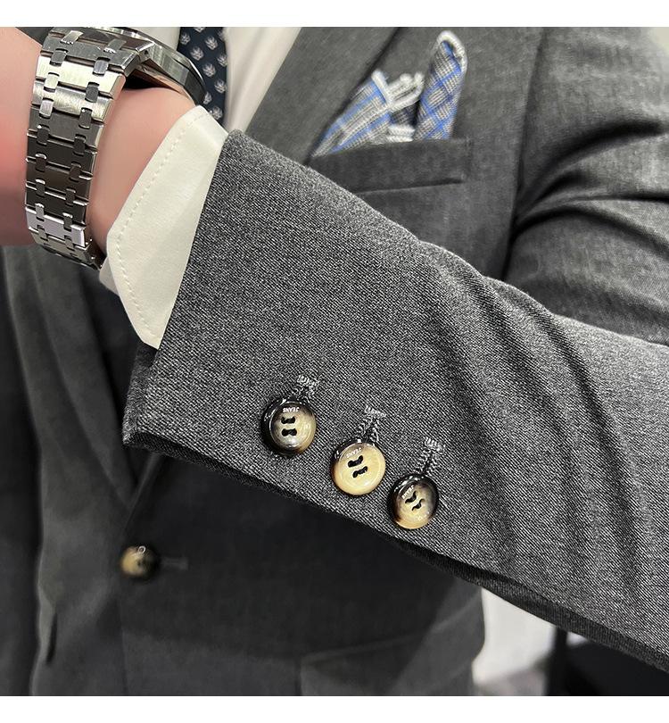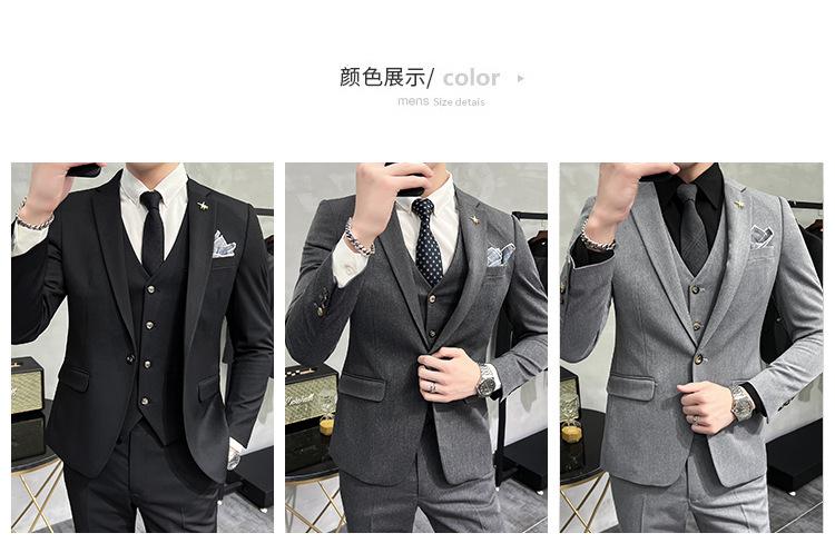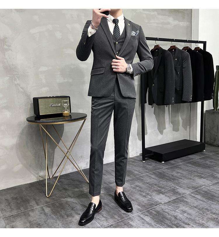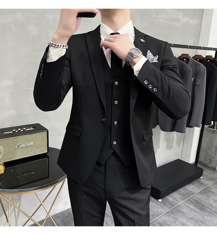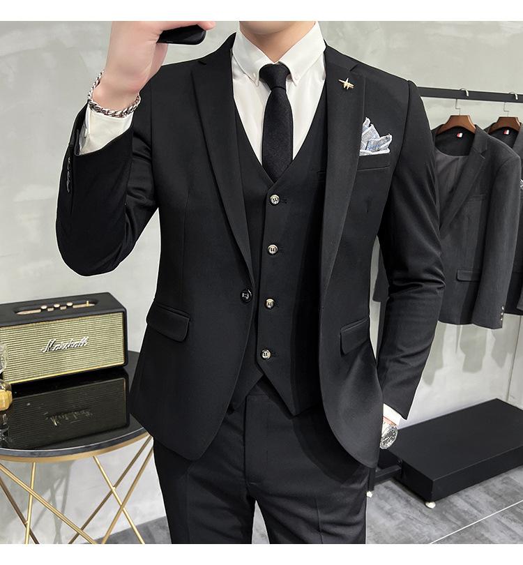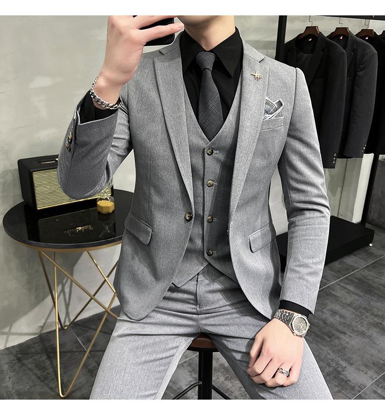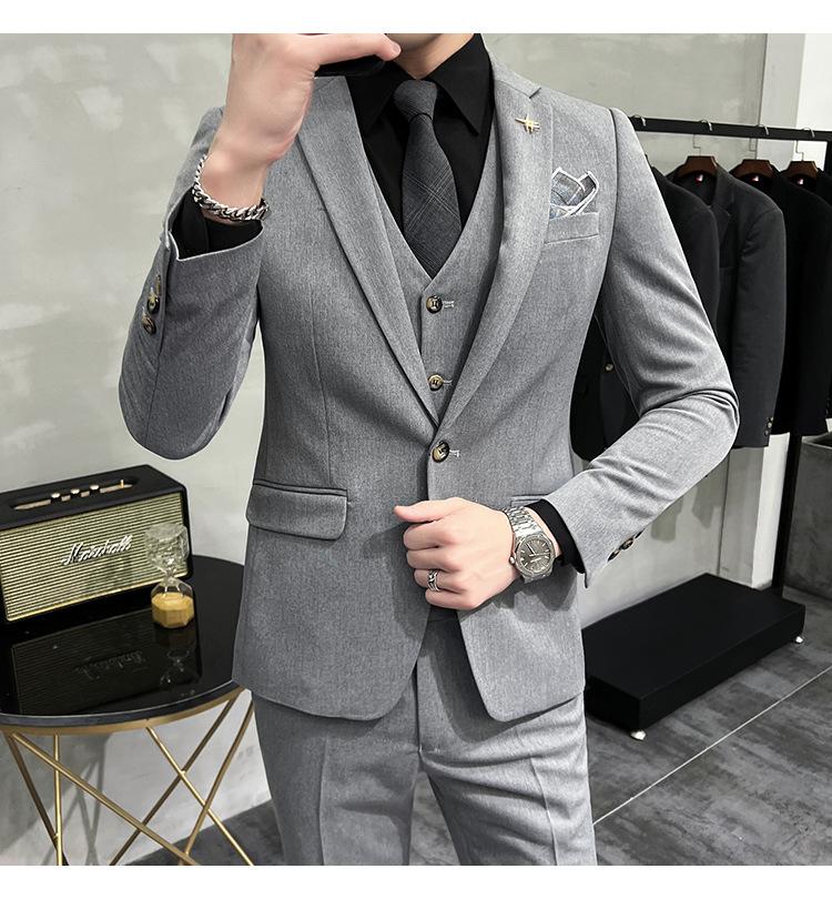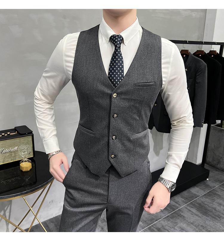 Conjunto de traje informal de negocios para hombre, traje formal de tres piezas, estilo coreano, corte entallado, para padrino de boda y novio.