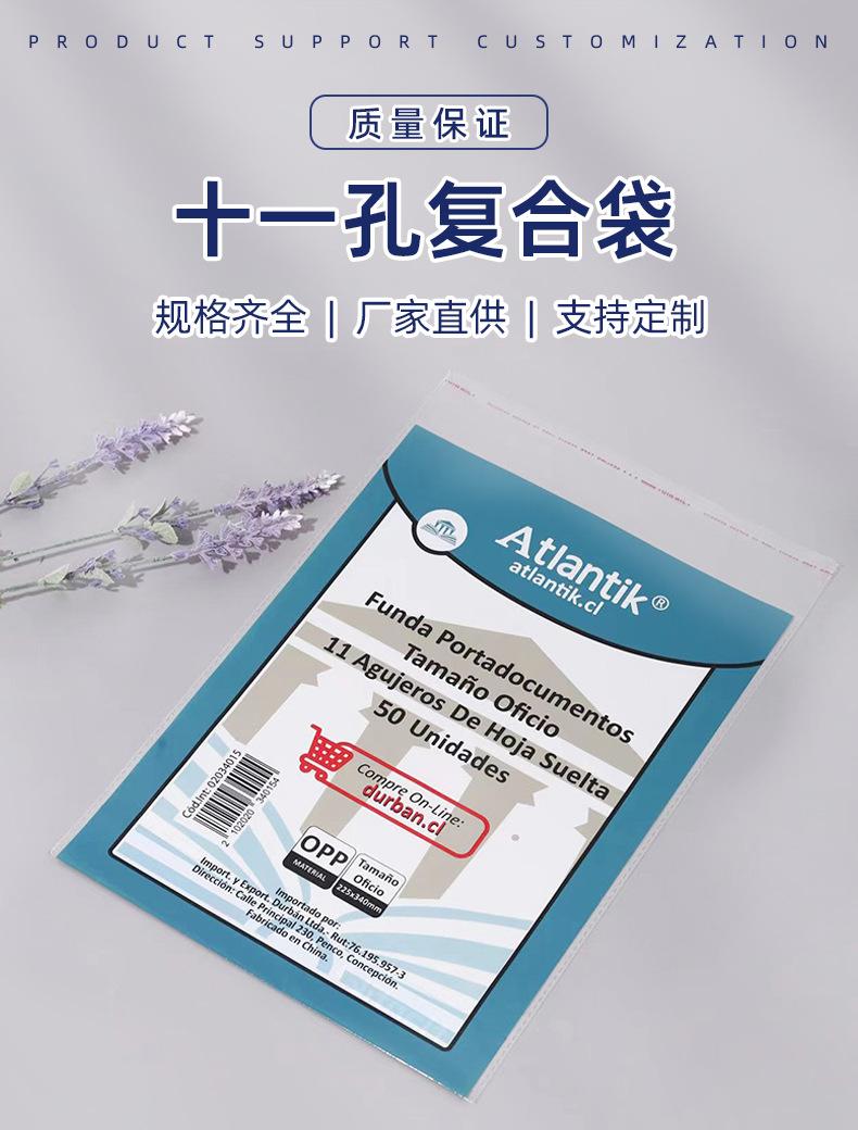 Los fabricantes formulan bolsas de embalaje de 11 orificios con impresión a color, bolsas selladas compuestas, papelería, bolsas de embalaje autoadhesivas OPP con logotipo impreso.