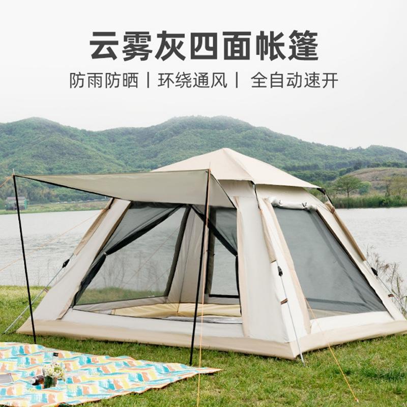 Tienda de campaña totalmente automática para exteriores, de doble capa, para playa, para acampar, de cuatro lados, a prueba de viento y lluvia, portátil, para 3-4 personas