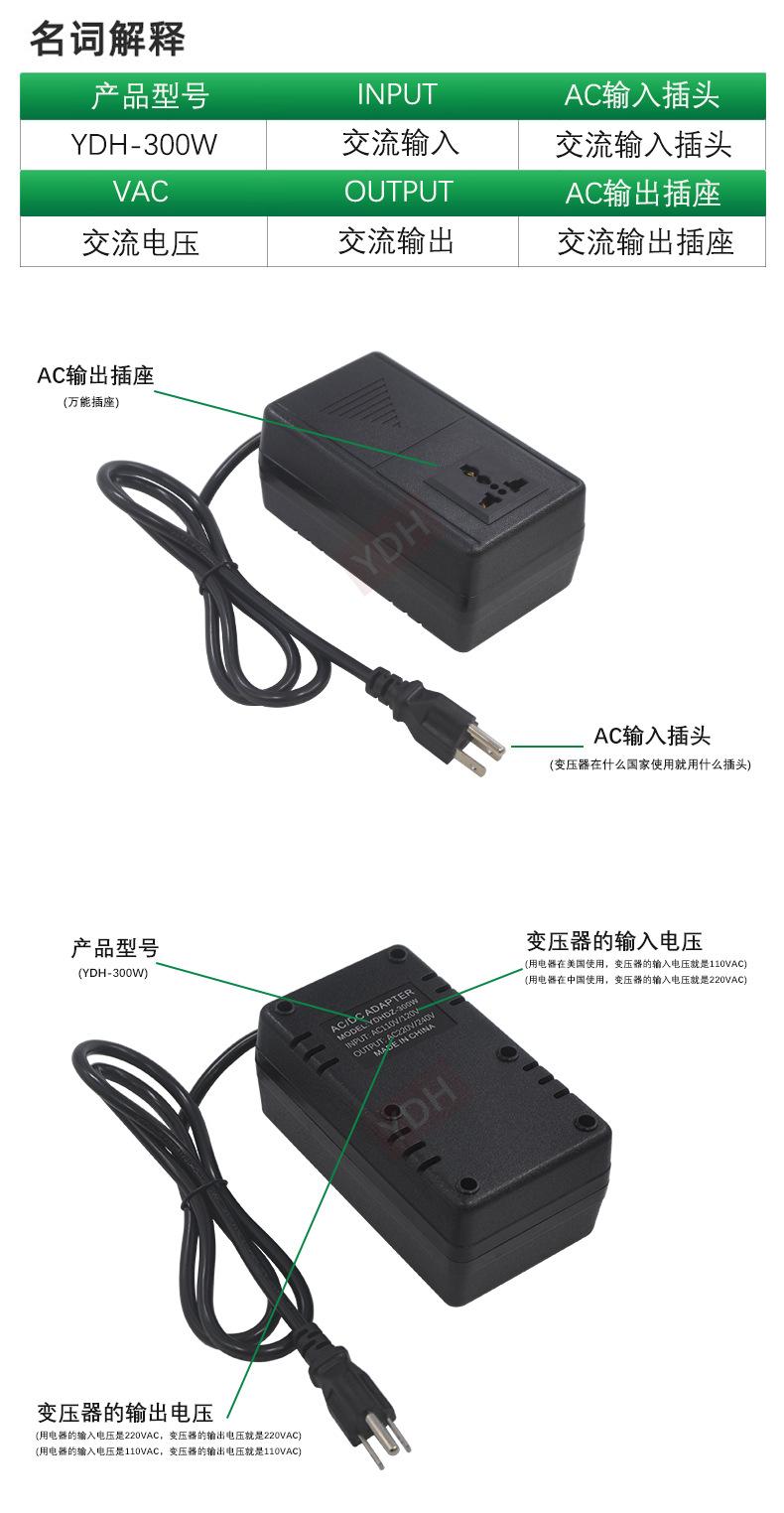 Transformador de viaje de 300 W Transformador de voltaje de 220 V a 110 V Transformador de potencia de 110 V a 220 V