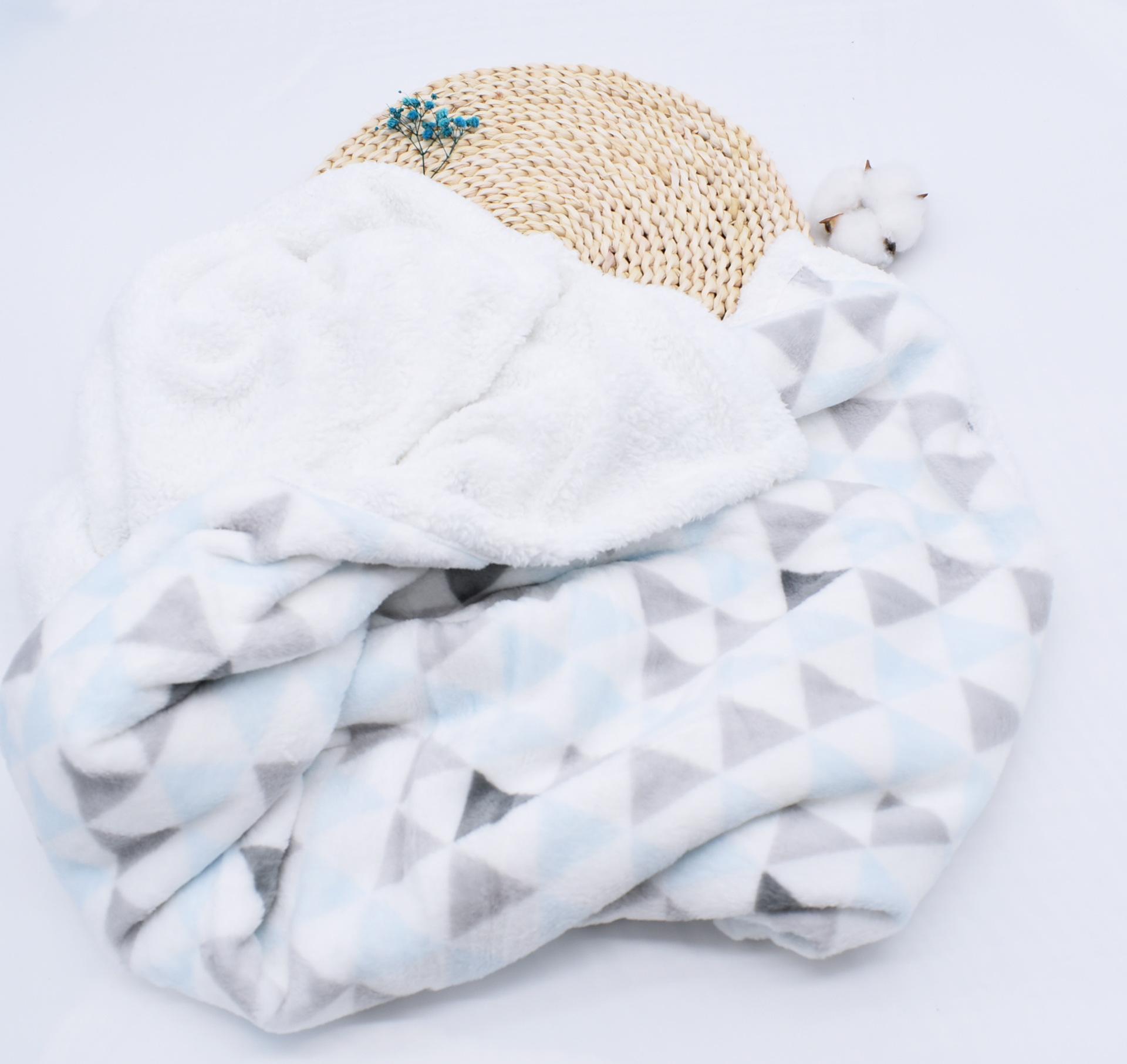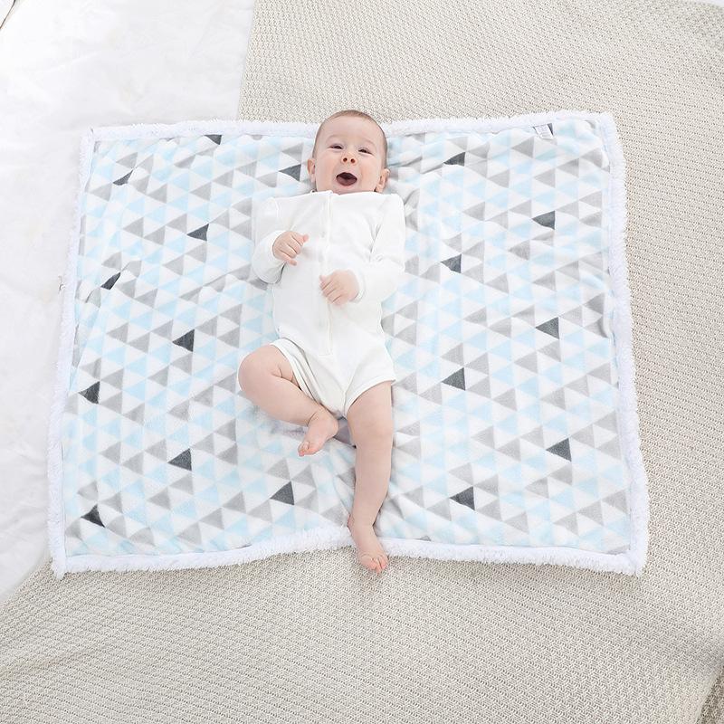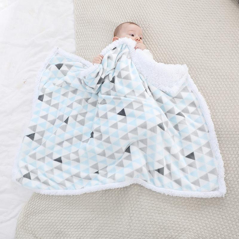 Manta para Bebé Recién Nacido Otoño e Invierno Manta de Doble Capa Terciopelo de Cordero Cubierta Plegada Manta Acolchada de Terciopelo para Recién Nacido Manta Pequeña Estampada