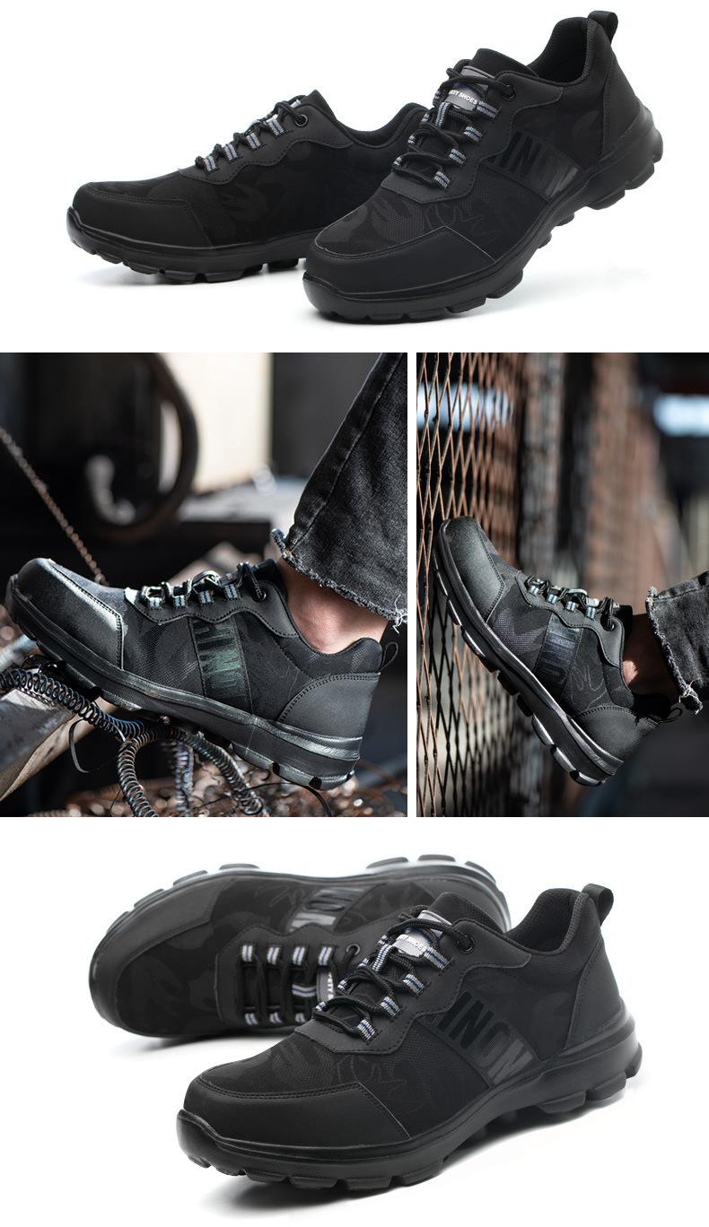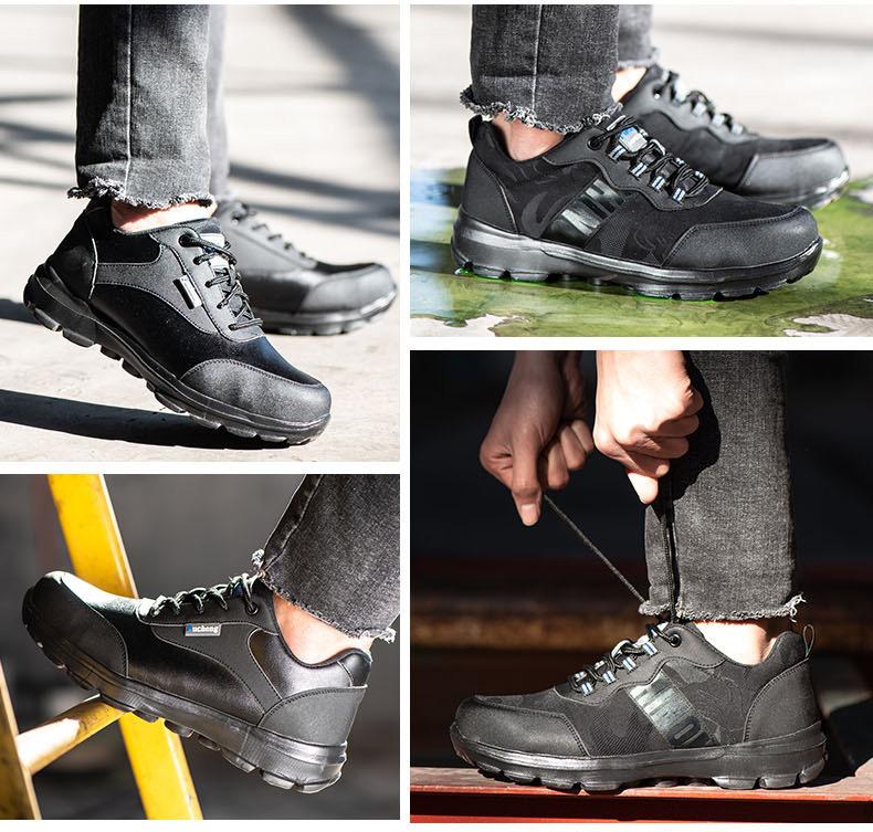 Zapatos de protección laboral de cuero ultrafino para hombre, suela sólida anti-aplastamiento, anti-perforación, fabricantes de zapatos de protección laboral al por mayor, zapatos de protección de seguridad ligeros y transpirables