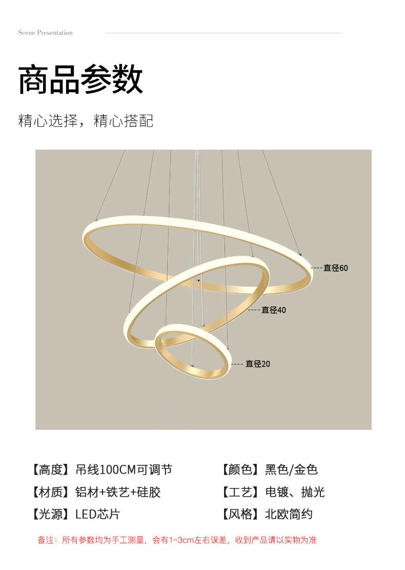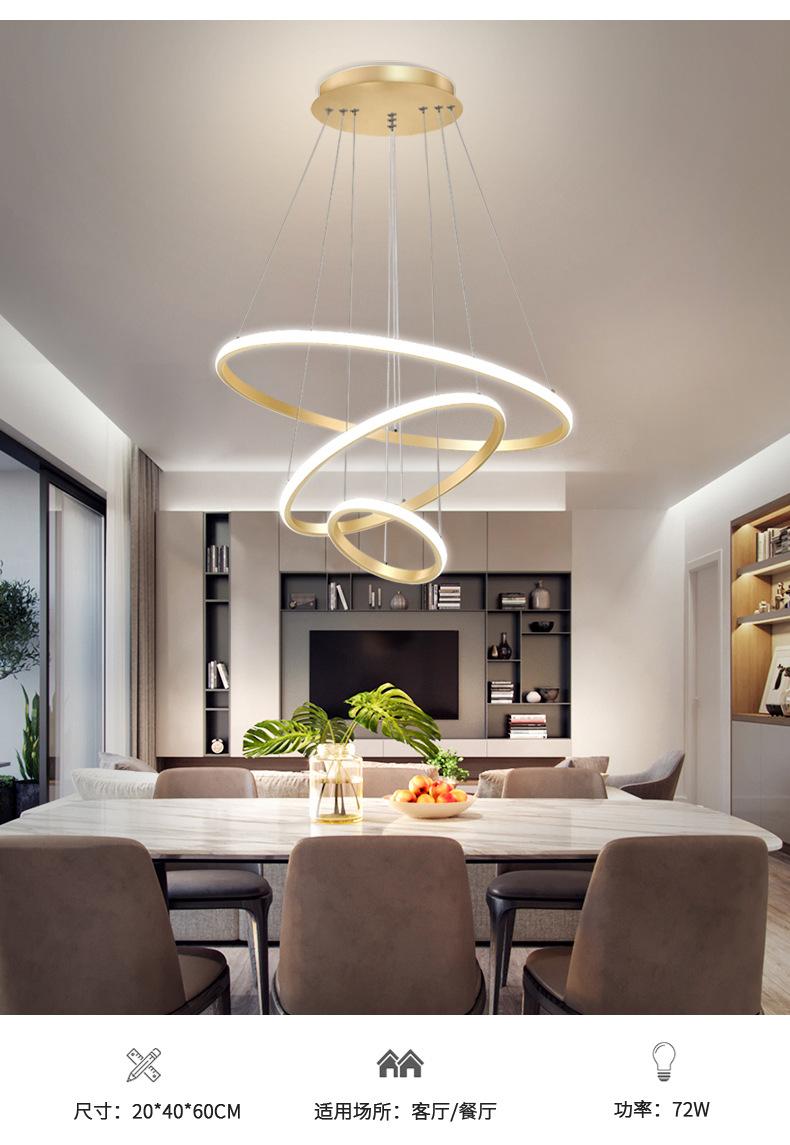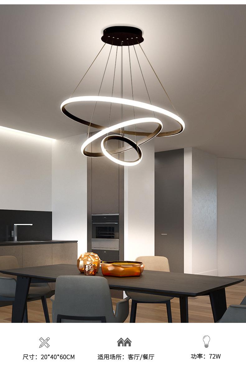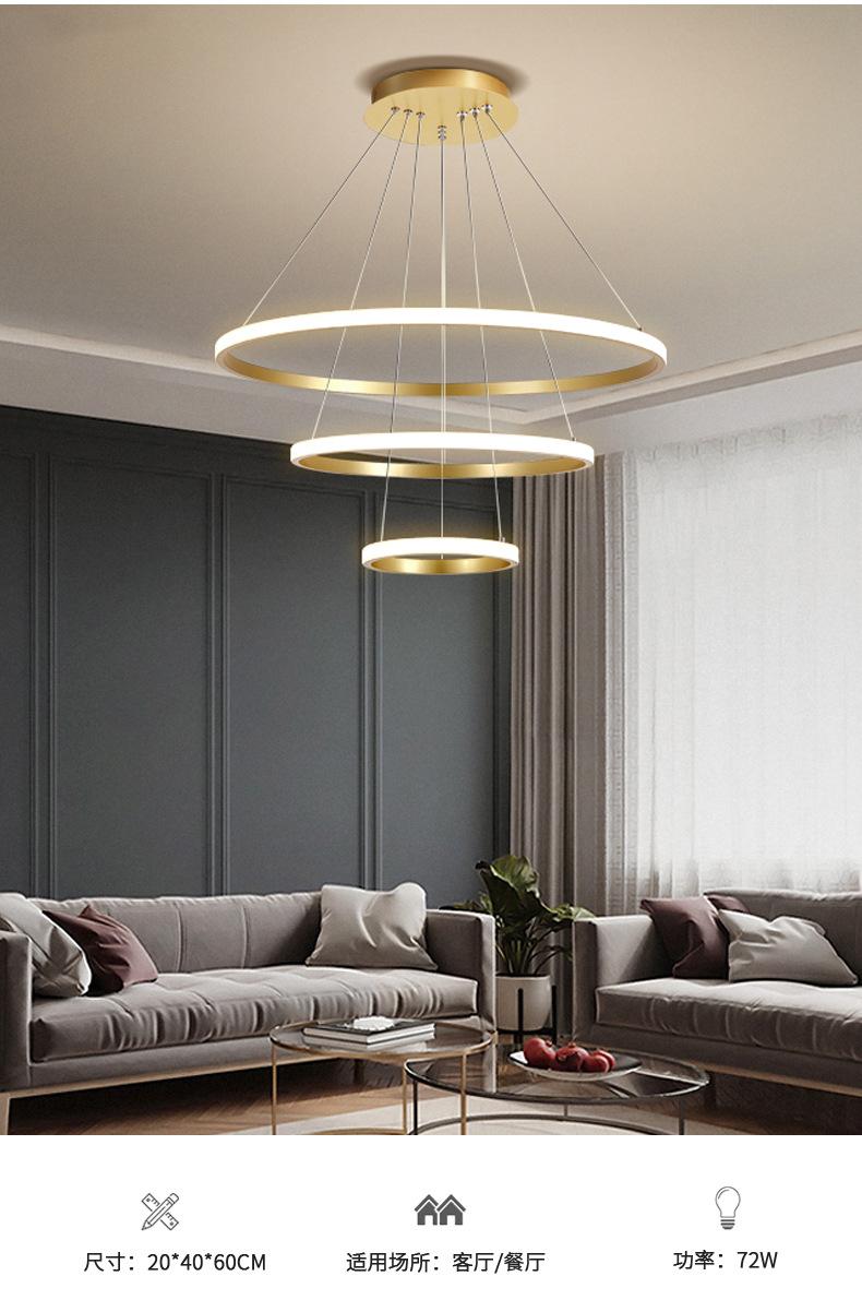 Candelabro de Restaurante Nórdico Bar Candelabro Moderno Simple Tres Anillos Estudio Dormitorio Principal Comedor Lámparas Transfronterizas