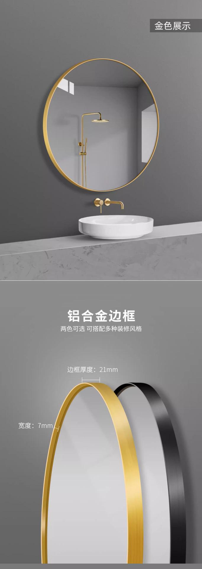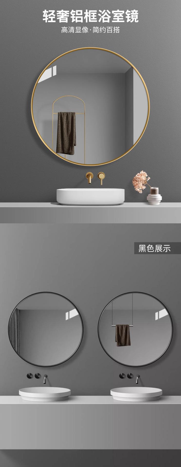 Espejo de baño redondo de aleación de aluminio de estilo nórdico europeo, espejo de baño de pared, espejo de tocador, espejo de baño de pared