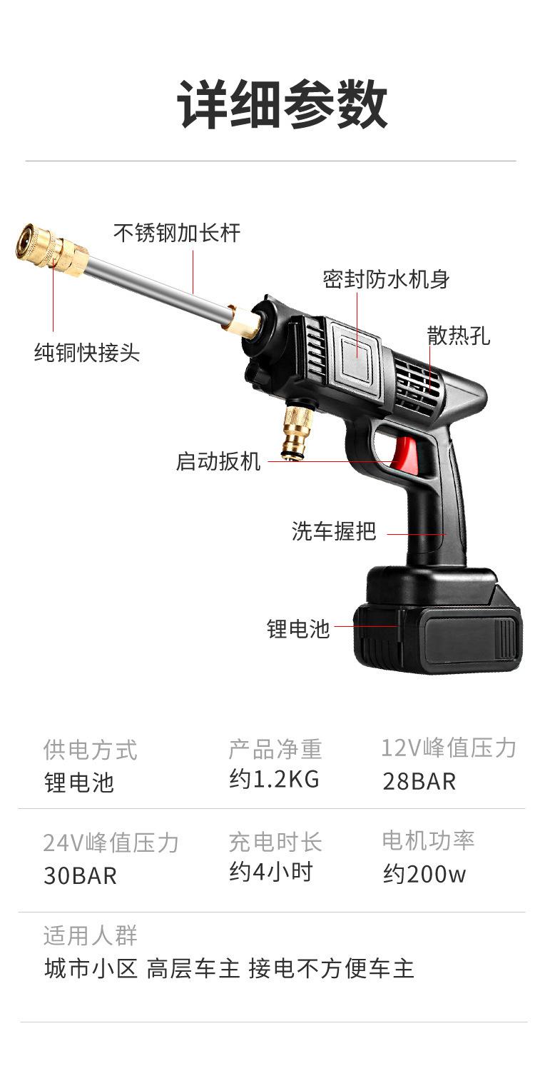 Pistola de agua de alta presión para lavado de autos, pistola de agua inalámbrica para lavado de autos, artefacto de lavado de autos con batería de litio para uso doméstico