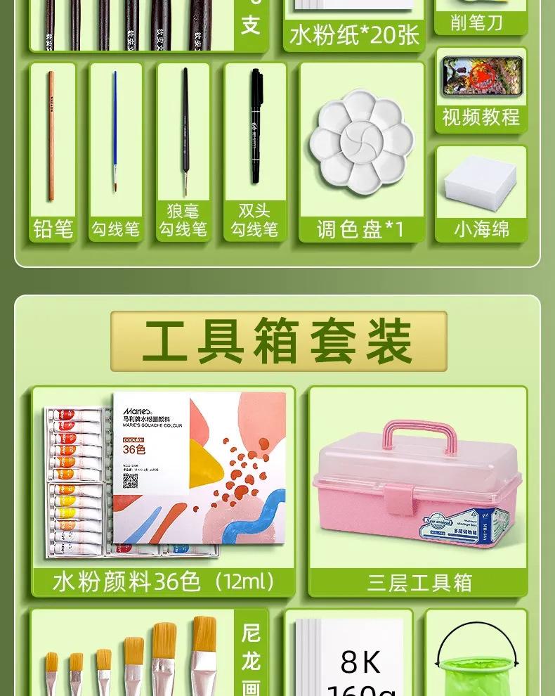 Multiple packaging colors are shipped randomly, 13-piece gouache paint set, 34-piece gouache paint set, 15-pie...