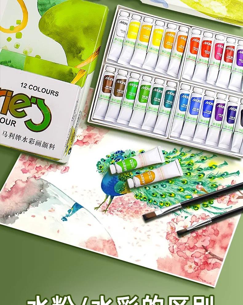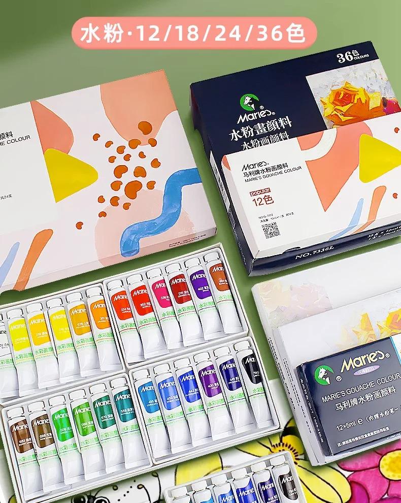 Traje de pintura de acuarela gouache Marley para principiantes, tubo de pintura gouache de 18 colores, pintura artística de 12 ml