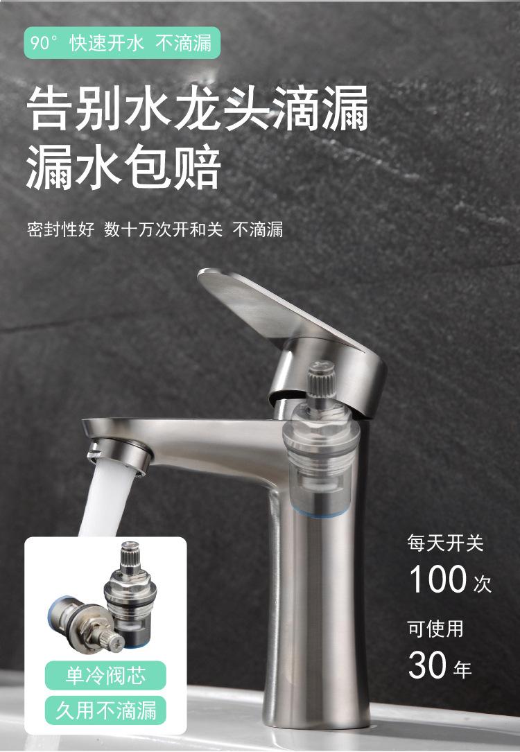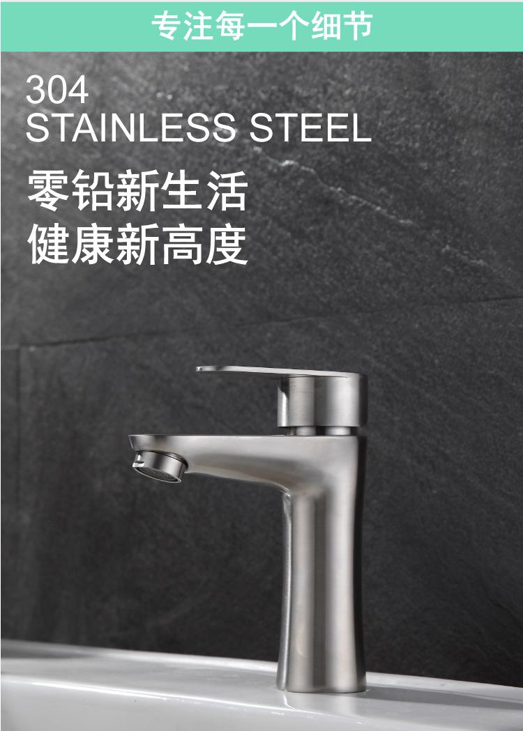 Grifo Monomando de Acero Inoxidable 304 de Cintura Pequeña para Agua Fría Grifo para Baño Lavabo para Lavado de Manos Grifo para Lavabo