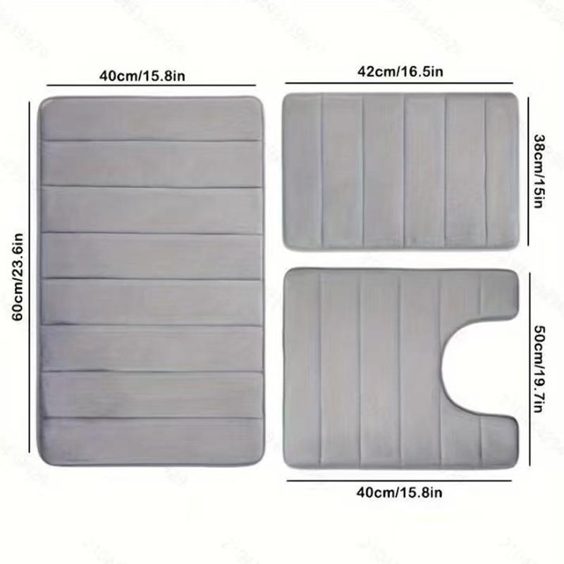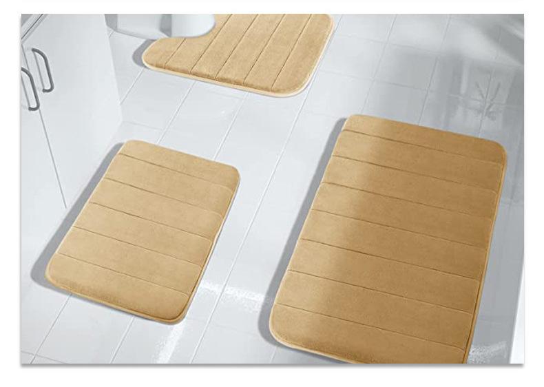Alfombrilla de franela de estilo sencillo, lavable, para baño, absorbente, de secado rápido, a rayas, juego de tres piezas