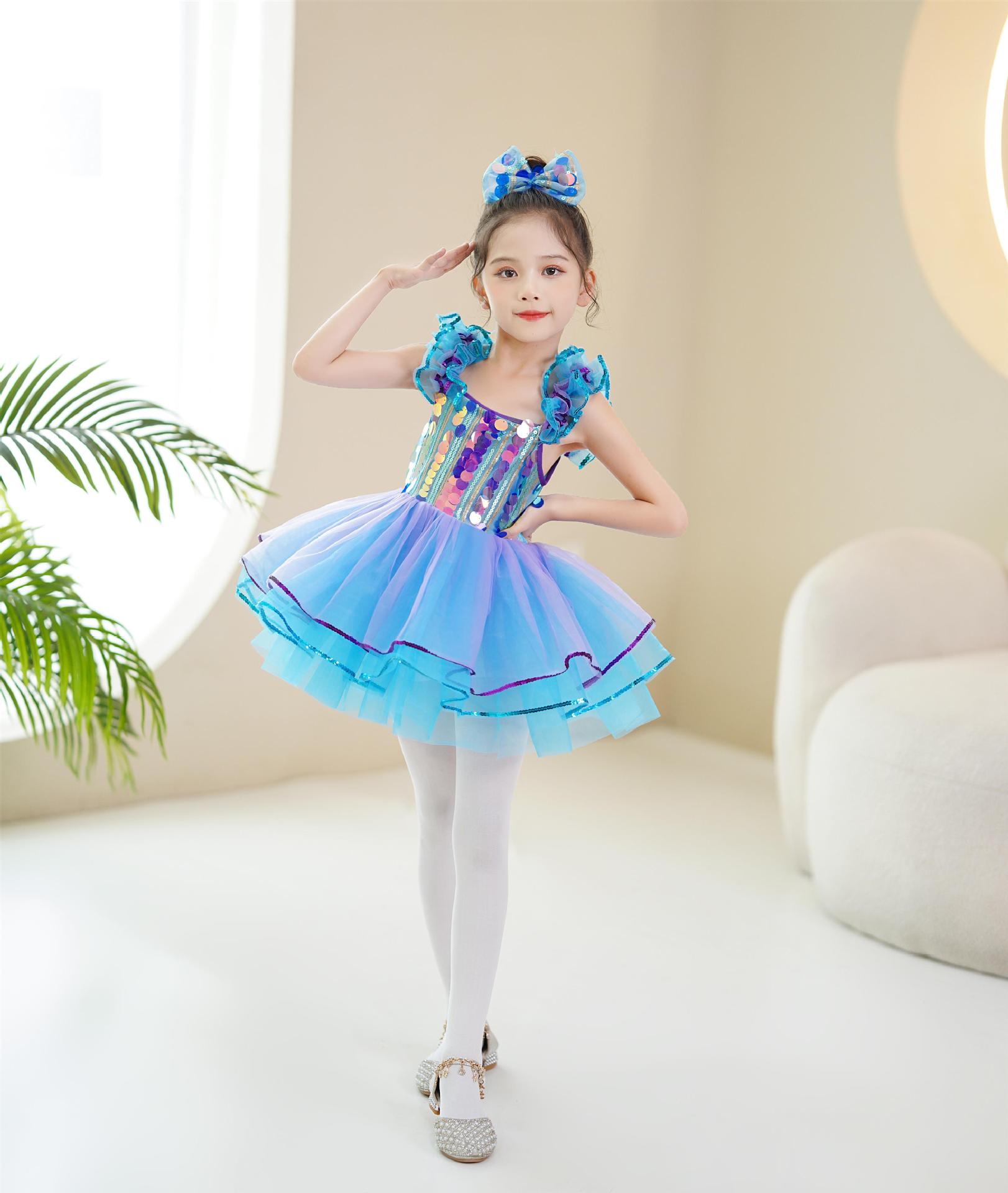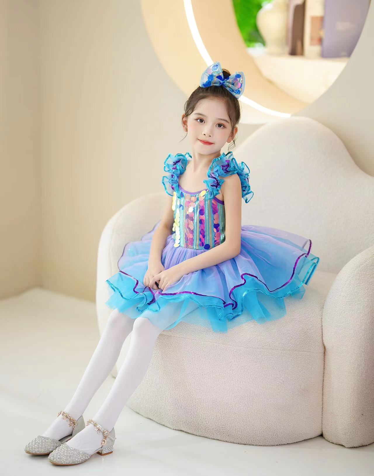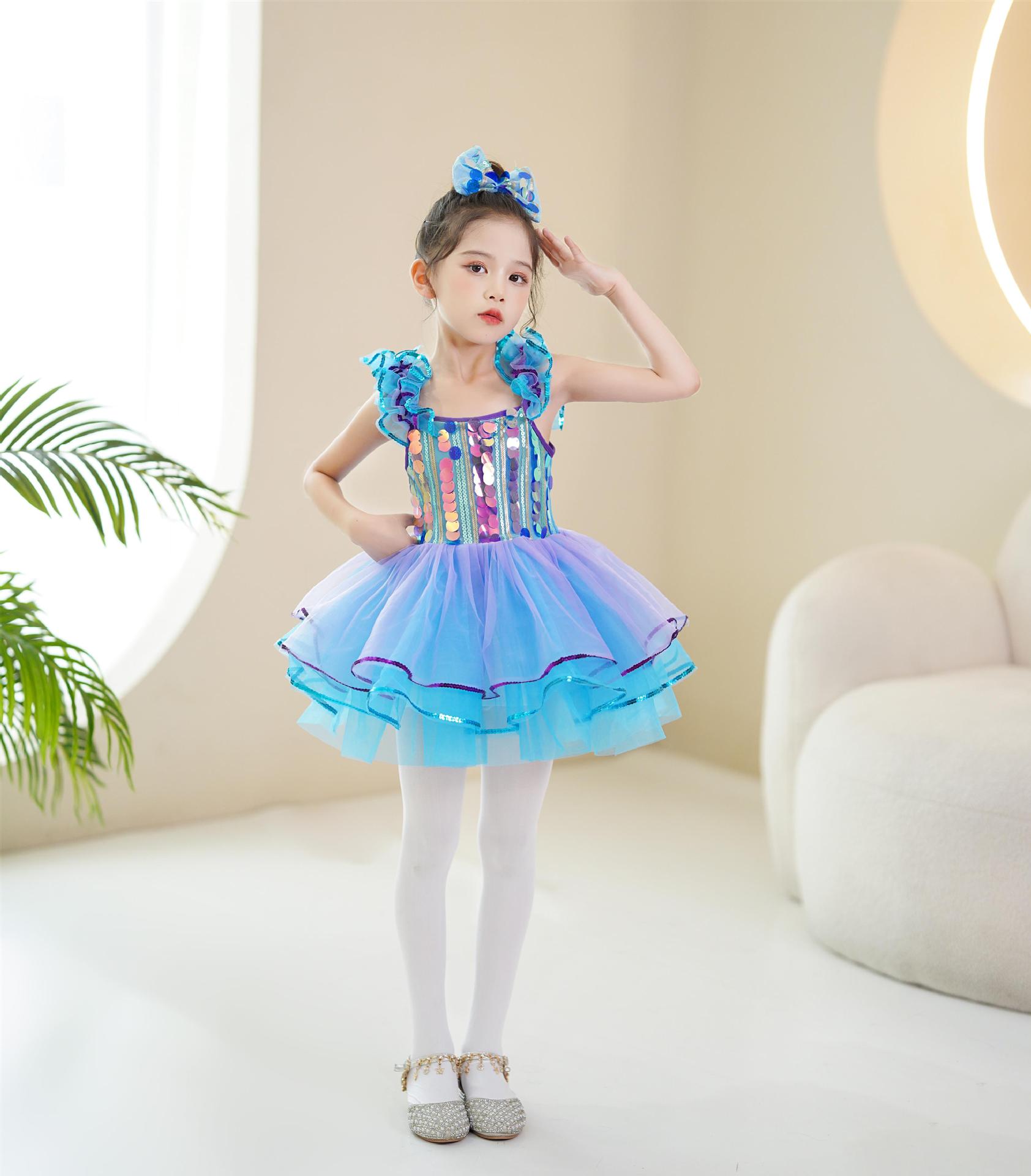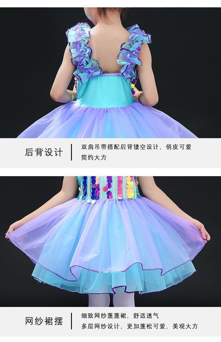 2023 nuevo disfraz de lentejuelas para niños, ropa de actuación de coro de princesa para niños, lindo vestido de gasa esponjosa para niñas