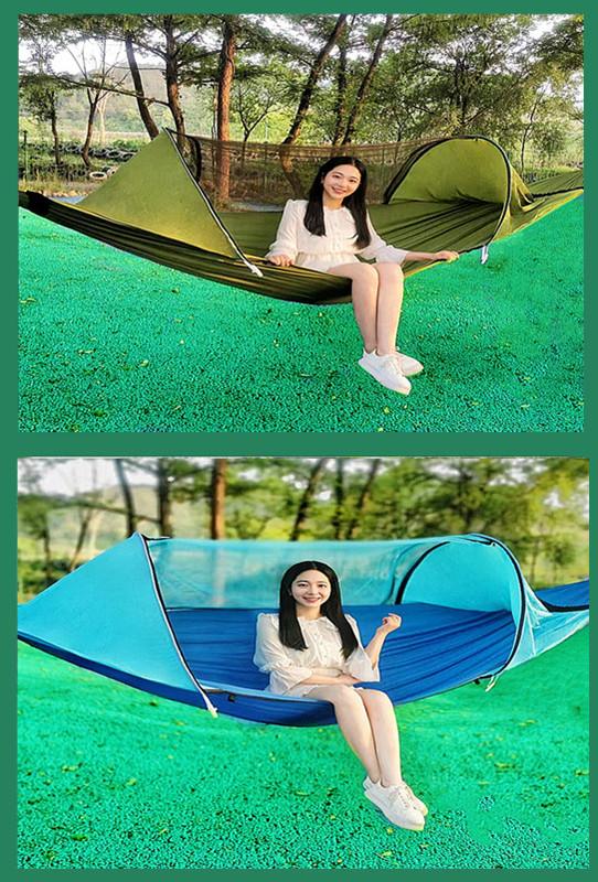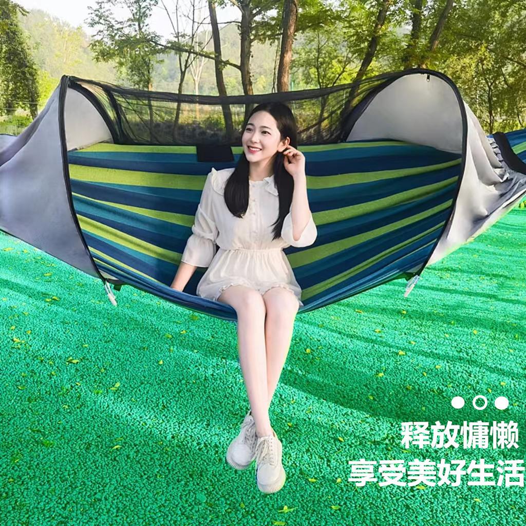 Hamaca con mosquitera y sombrilla totalmente automática para exteriores, doble antivuelco, portátil, columpio para niños, para colgar del árbol, silla de camping