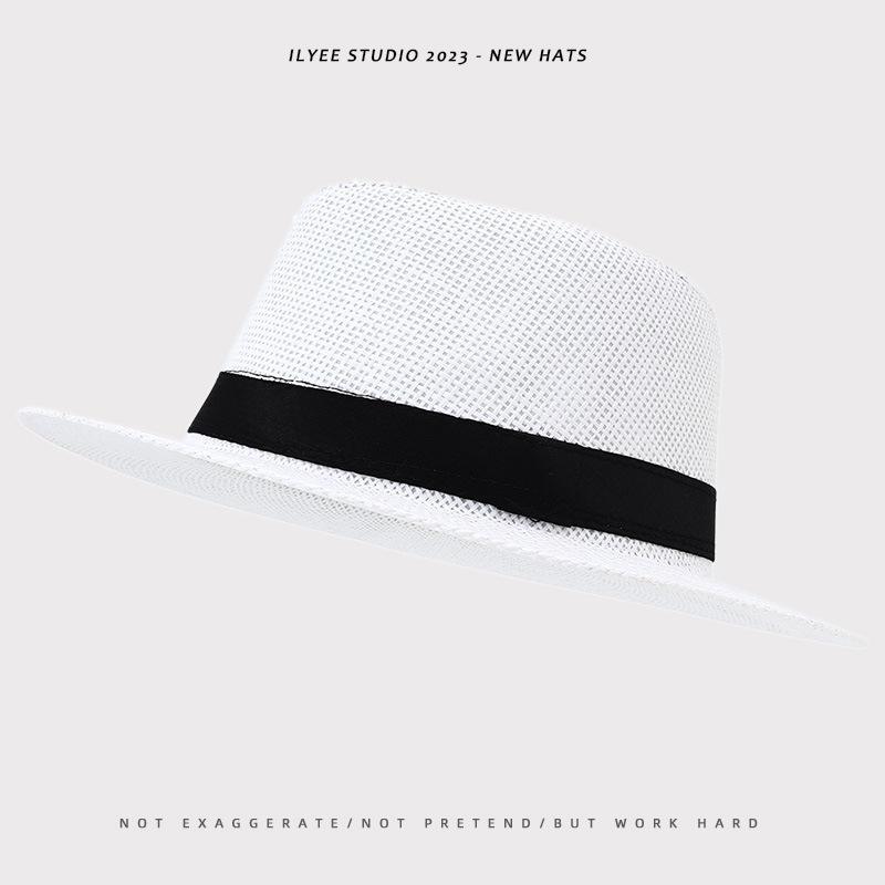 Sombrero Panamá de Hombre Verano Nuevo Sombrero Jazz Británico Sombrero de Sol para Mujer Playa Sombrero de Copa Plana al por Mayor