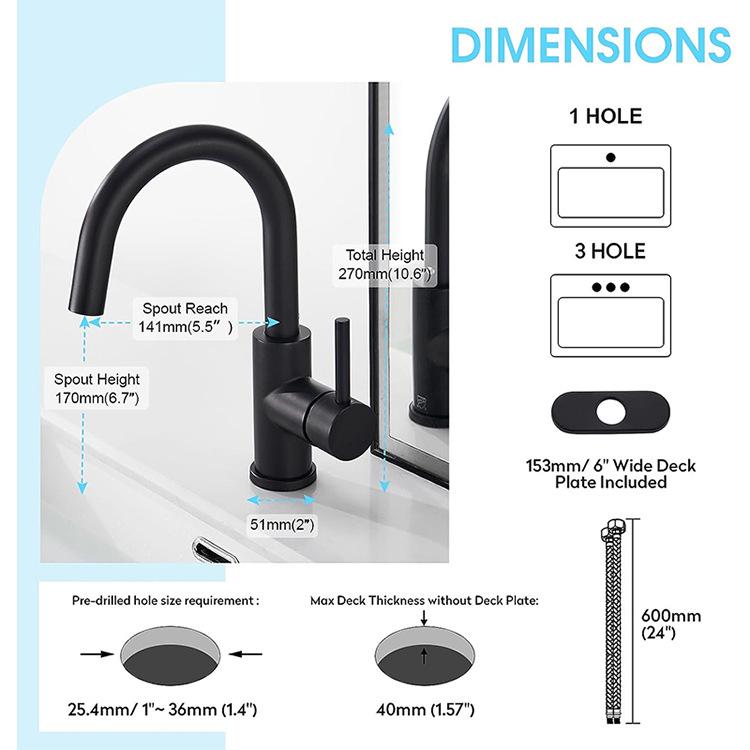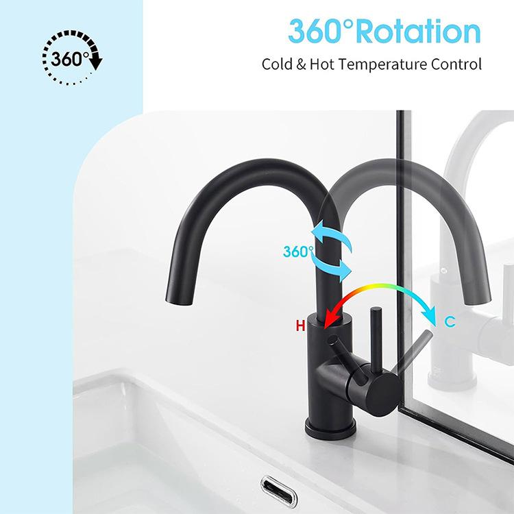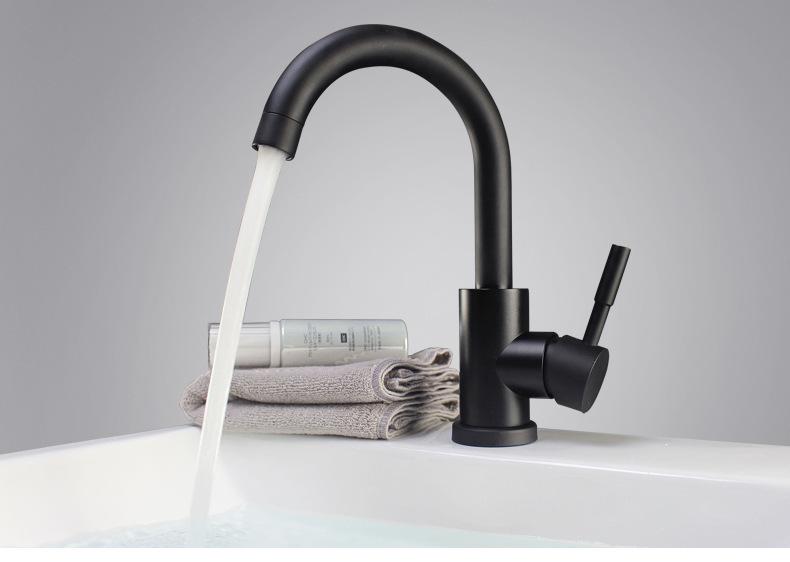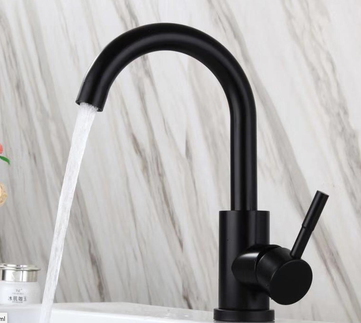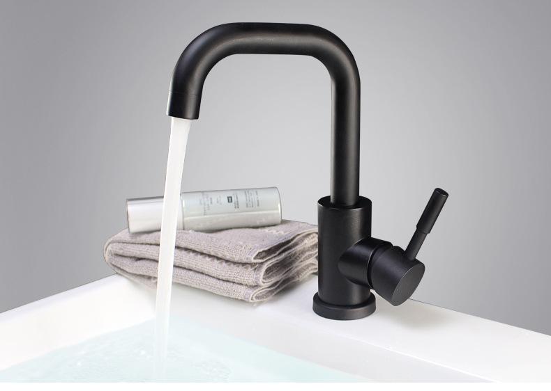 Grifo de lavabo negro de acero inoxidable 304, grifo de lavabo de agua fría y caliente, grifo de baño de estilo europeo, grifo negro