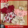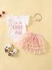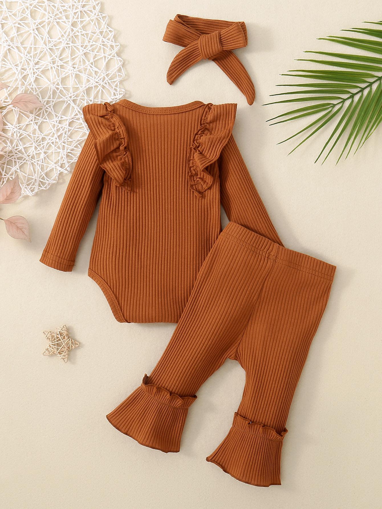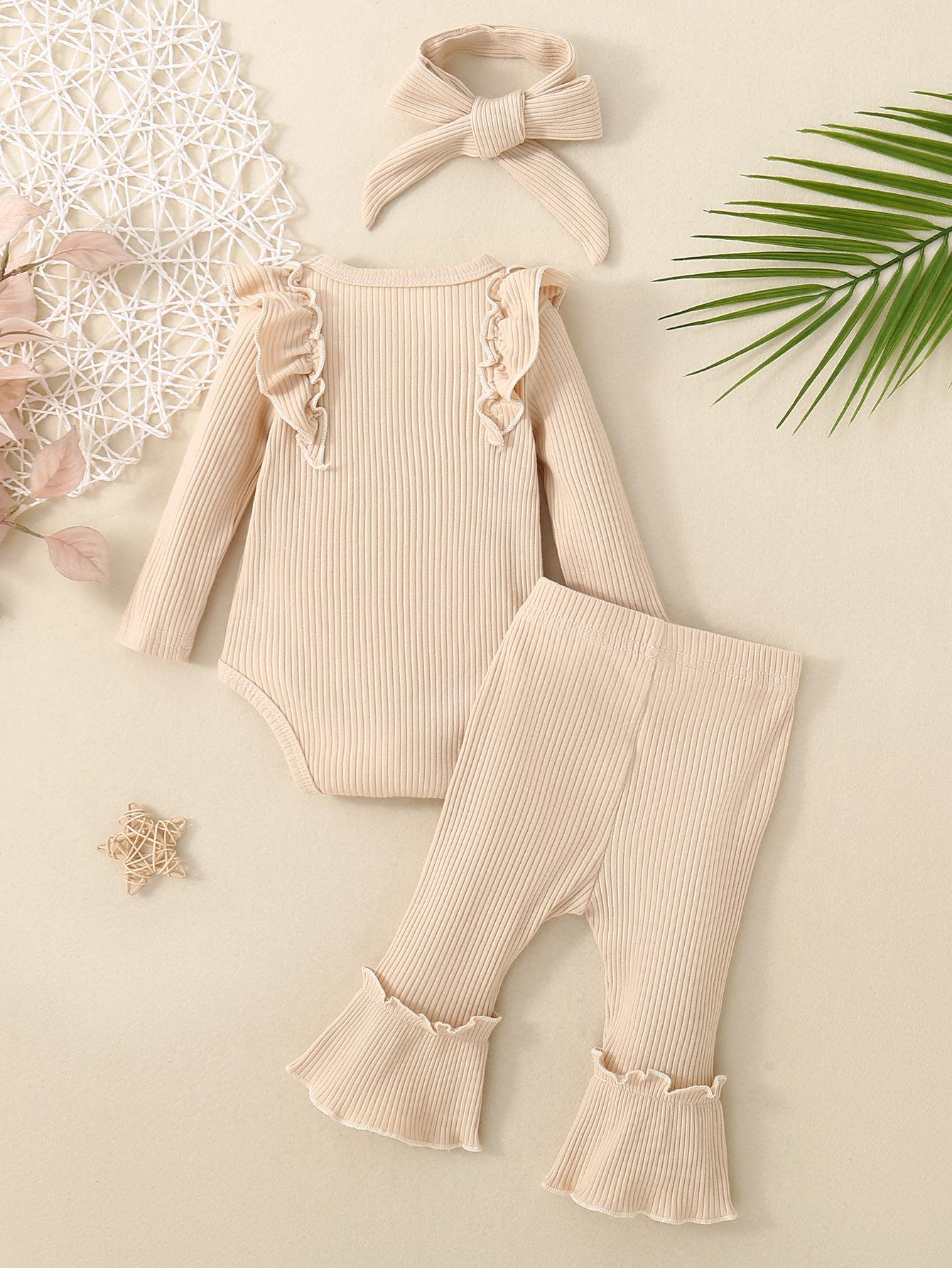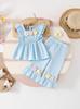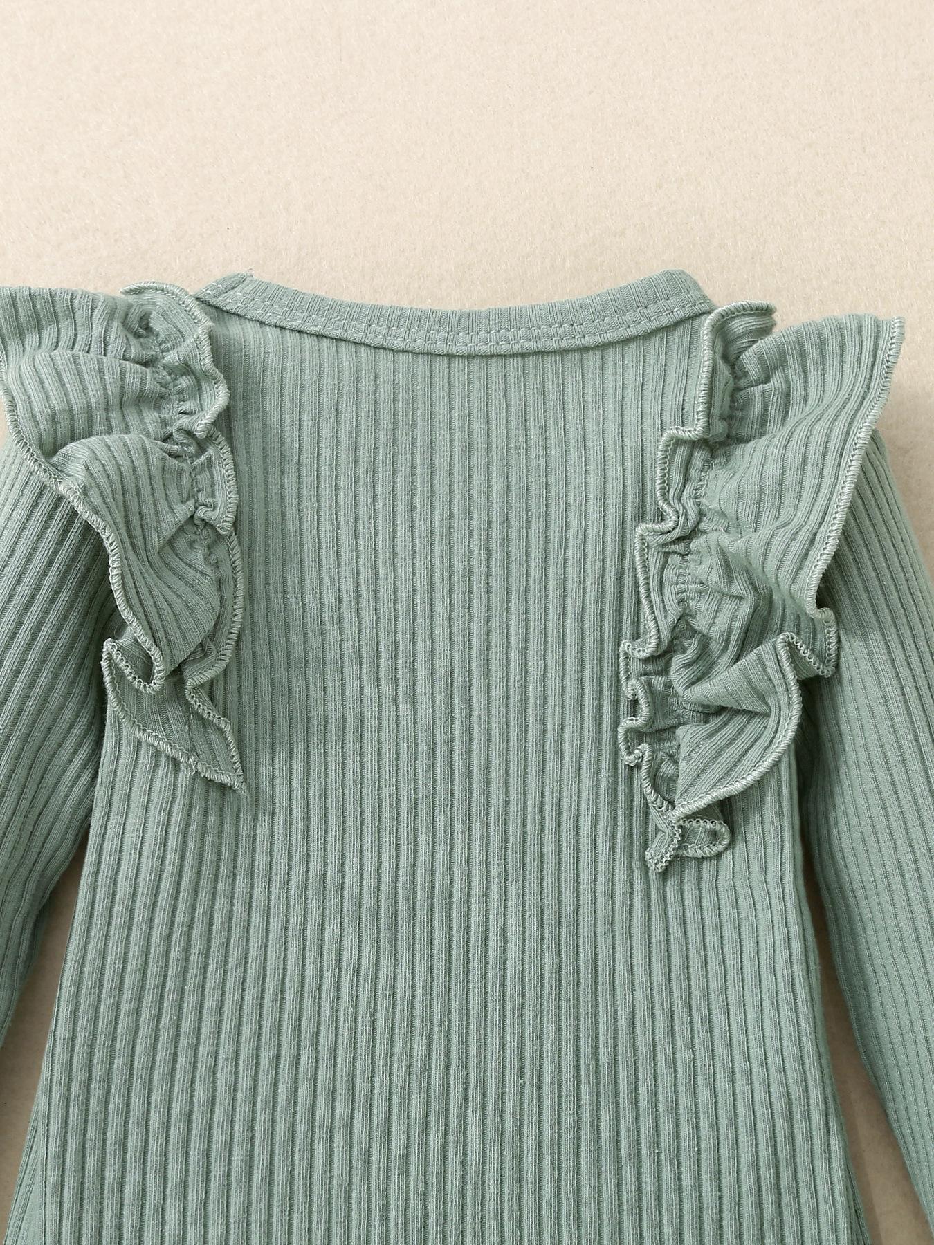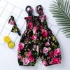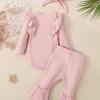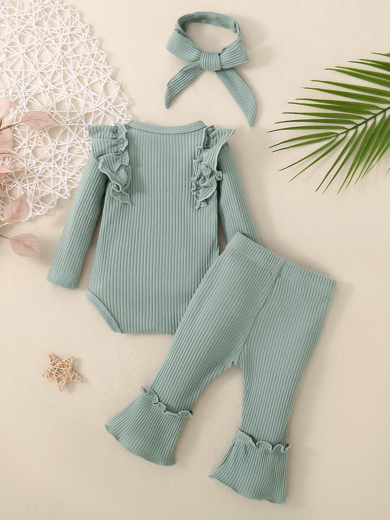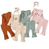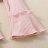 Traje de pantalón acampanado de color liso con bordado de flores para niña pequeña con borde cruzado