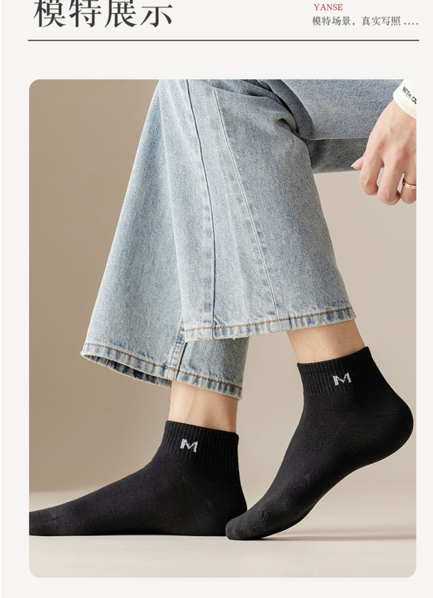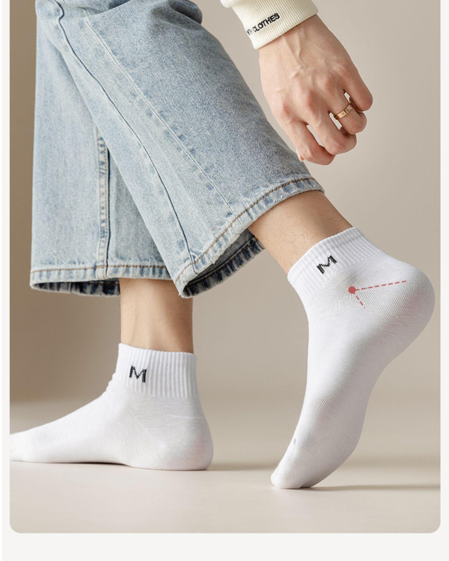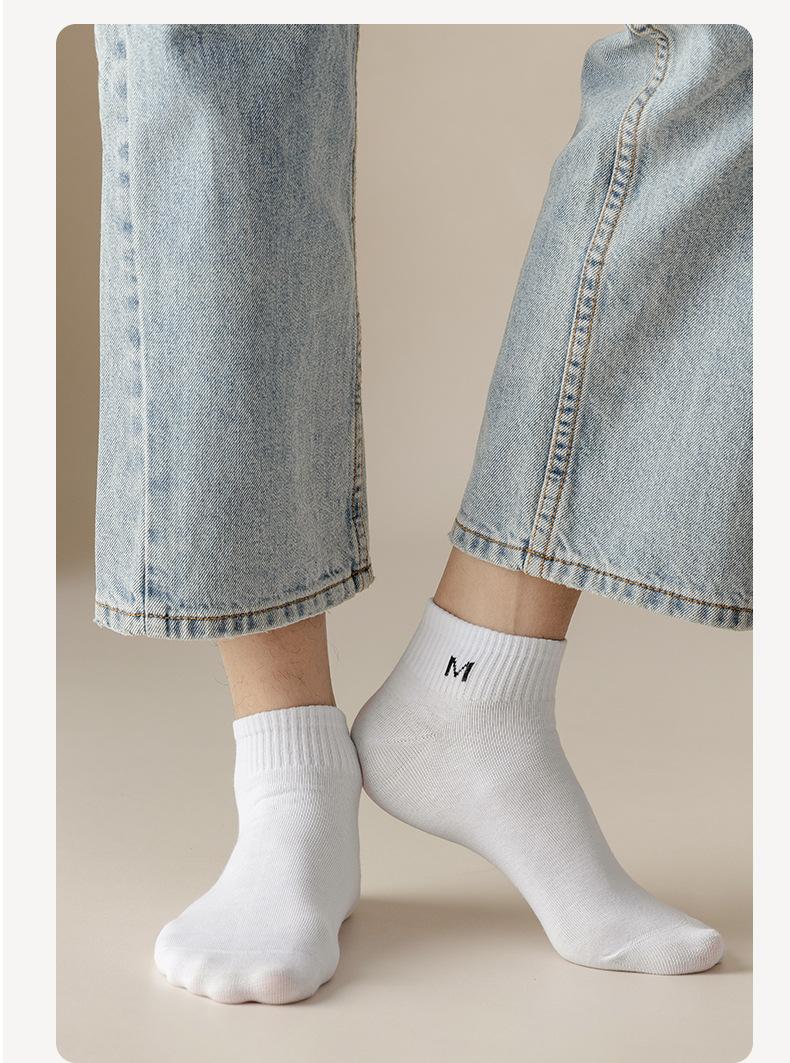 Calcetines de primavera y otoño para hombre, calcetines con la letra M, transpirables y absorbentes del sudor, calcetines blancos y negros hasta media pantorrilla, calcetines casuales para hombre.