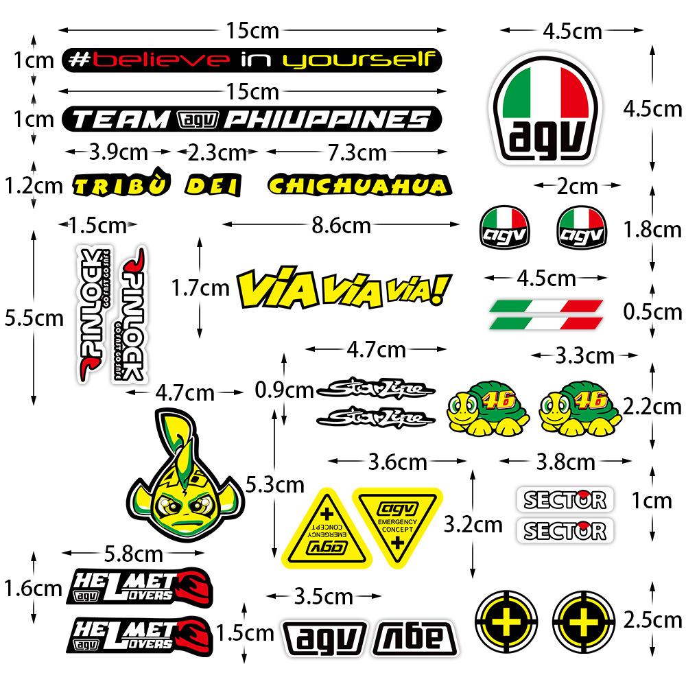Pegatinas para casco AGV Rossi Rossi No. 46 pegatinas reflectantes impermeables para motocicletas, pegatinas de carreras modificadas 3M