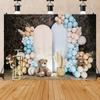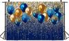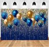 Fondo de fotografía para fiesta de cumpleaños con globos azules y dorados con borde cruzado, tela de vinilo para fotos