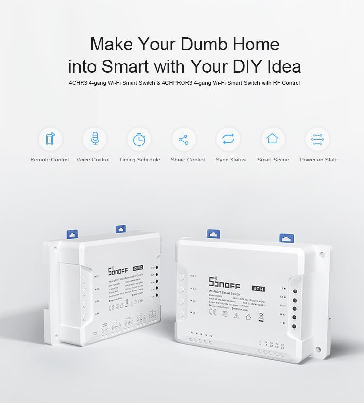 Sonoff 4Ch R3/4Ch Pro R3 Interruptor Wifi Inteligente Modificación Control Remoto Independiente Temporización
