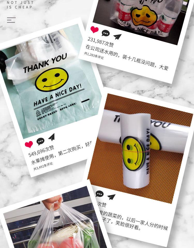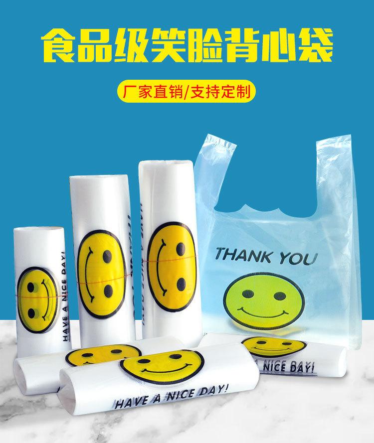 Bolsa de plástico transparente con cara sonriente para supermercado, bolsa desechable portátil para compras, bolsa para llevar comida envasada, bolsa conveniente en stock