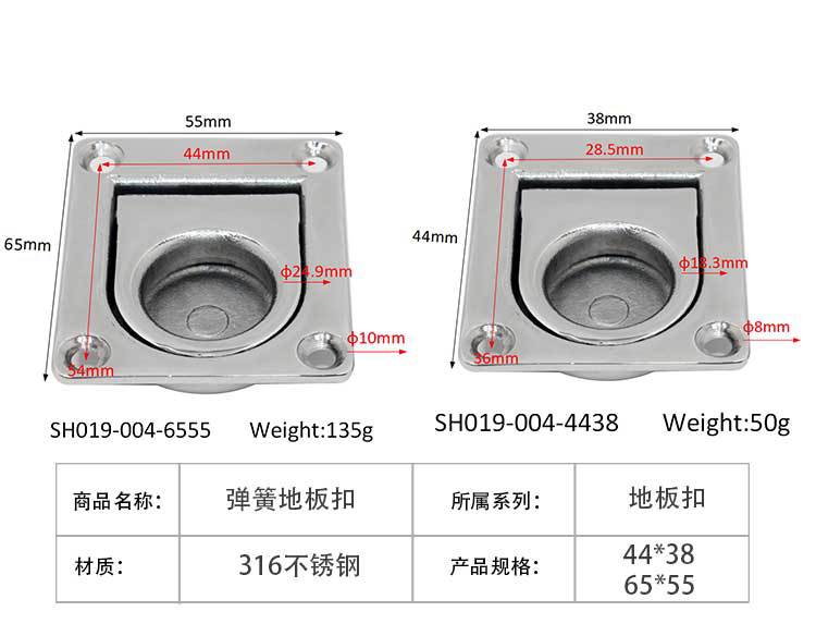 Hebilla de piso cuadrada de acero inoxidable 316 para tapa de escotilla de yate, herrajes marinos, accesorios para yates, manija, anillo de tracción, hebilla de cubierta
