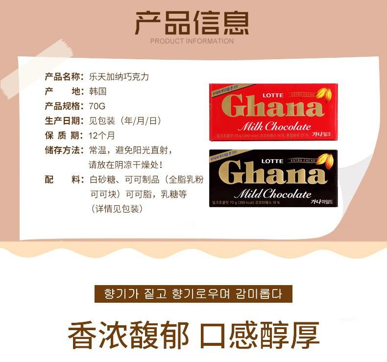 Nombre del producto: Corea del Sur importó Lotte LOTTE Ghana chocolate negro puro con leche 90 g / caja (40 cajas en una caja)