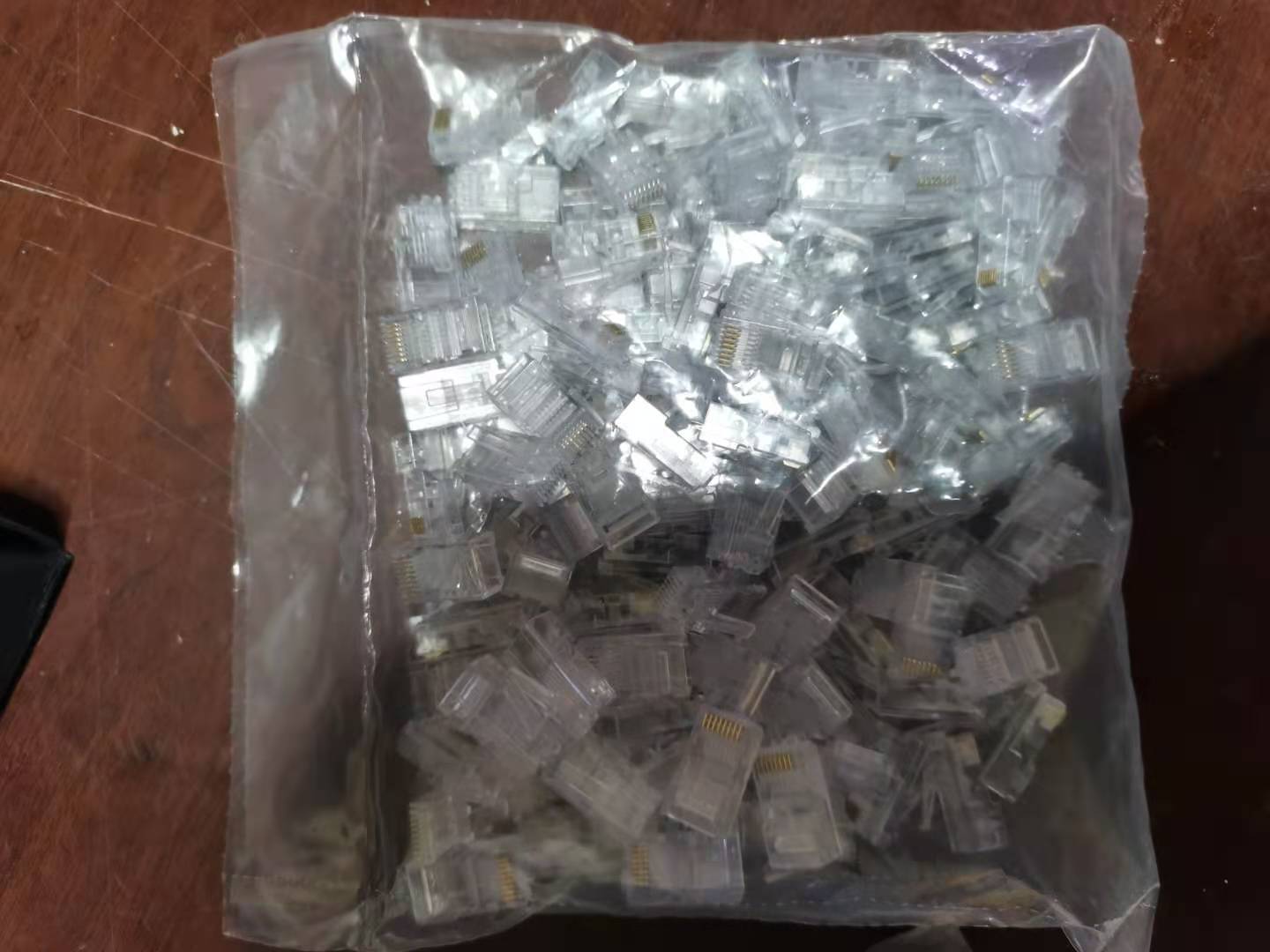 Conector de cristal RJ45. Conector de cristal sin blindaje de categoría 5e.