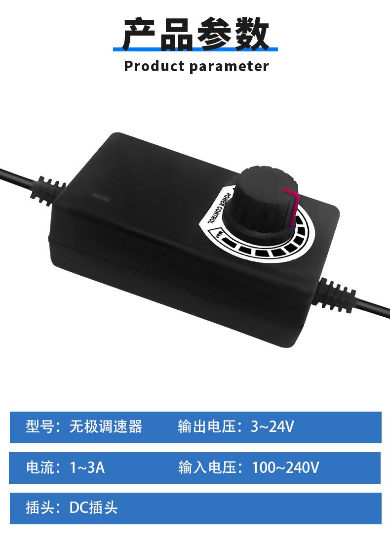 Fuente de alimentación de escritorio de doble línea ajustable, 3-12 V, 2 A, 3 A, ventilador, interruptor regulador de velocidad, adaptador de corriente