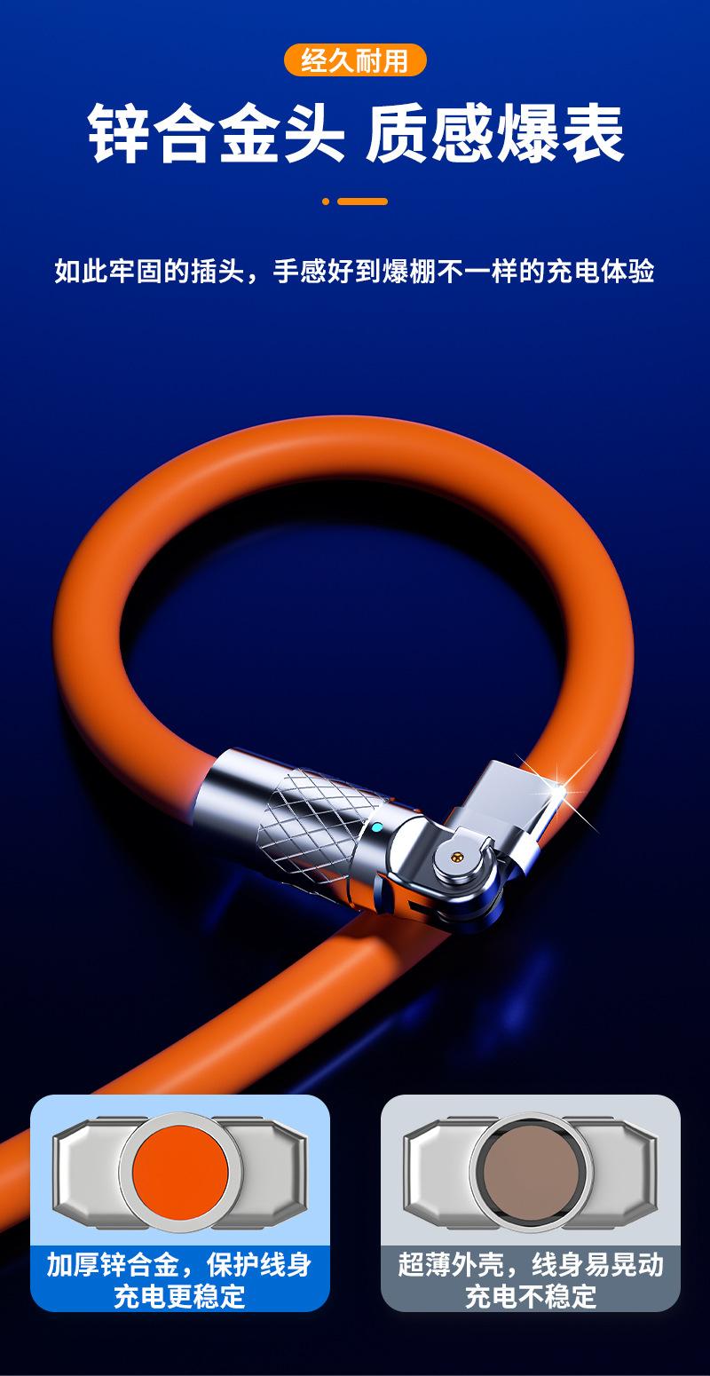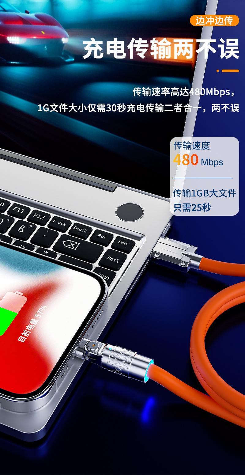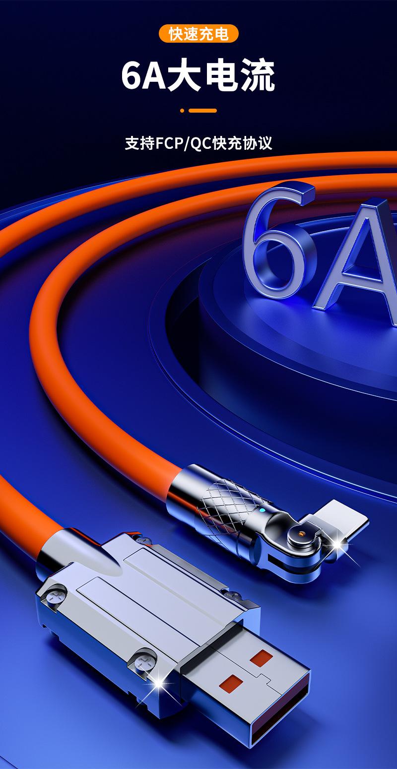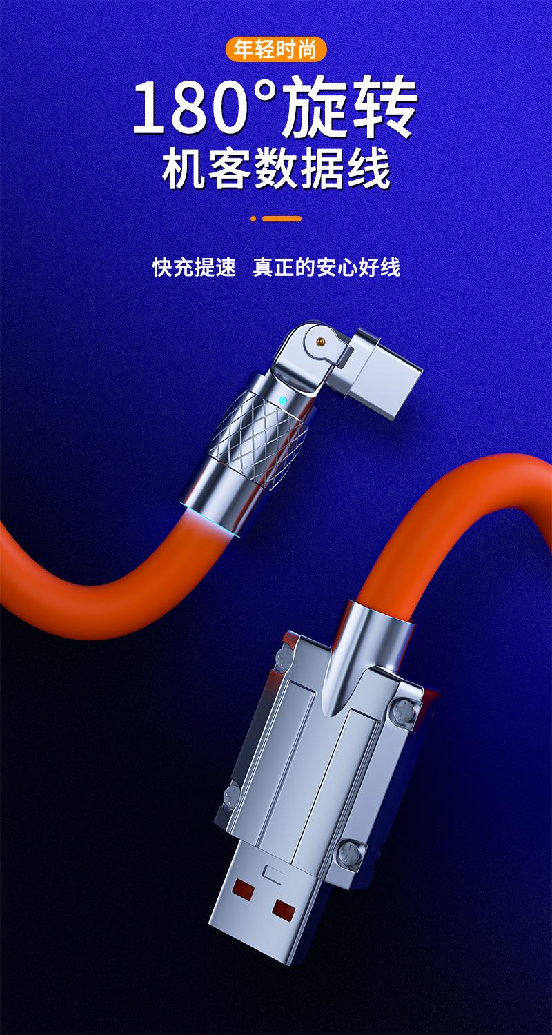 Codo de 180 grados Cable de datos Carga rápida 1M2M120W6A66W Cable para teléfono móvil Material de aleación de zinc Tipo-C