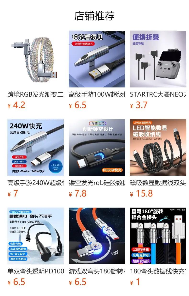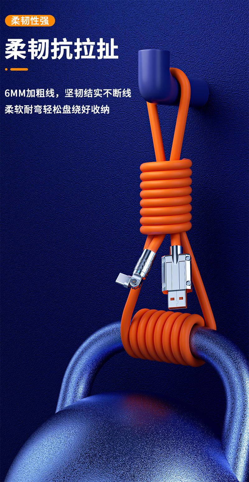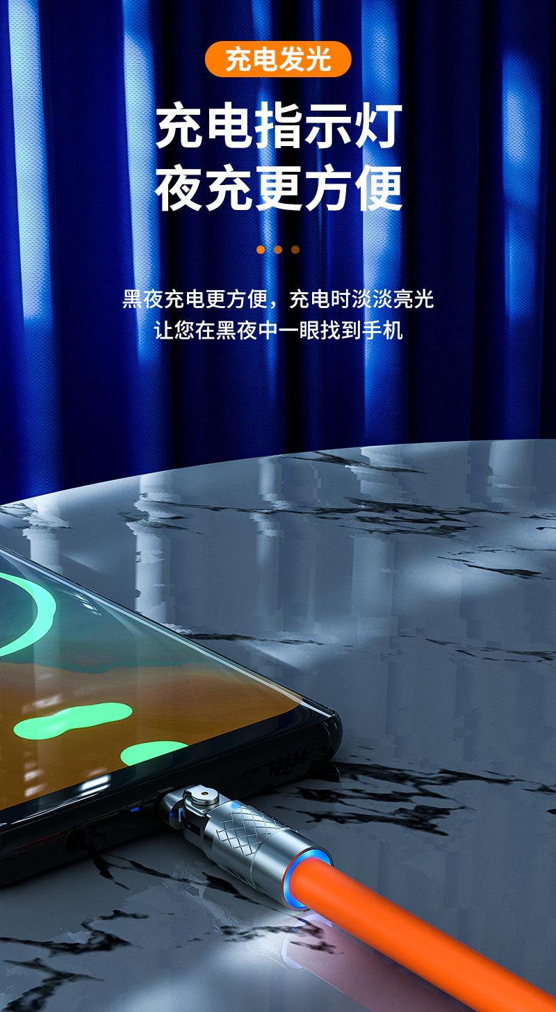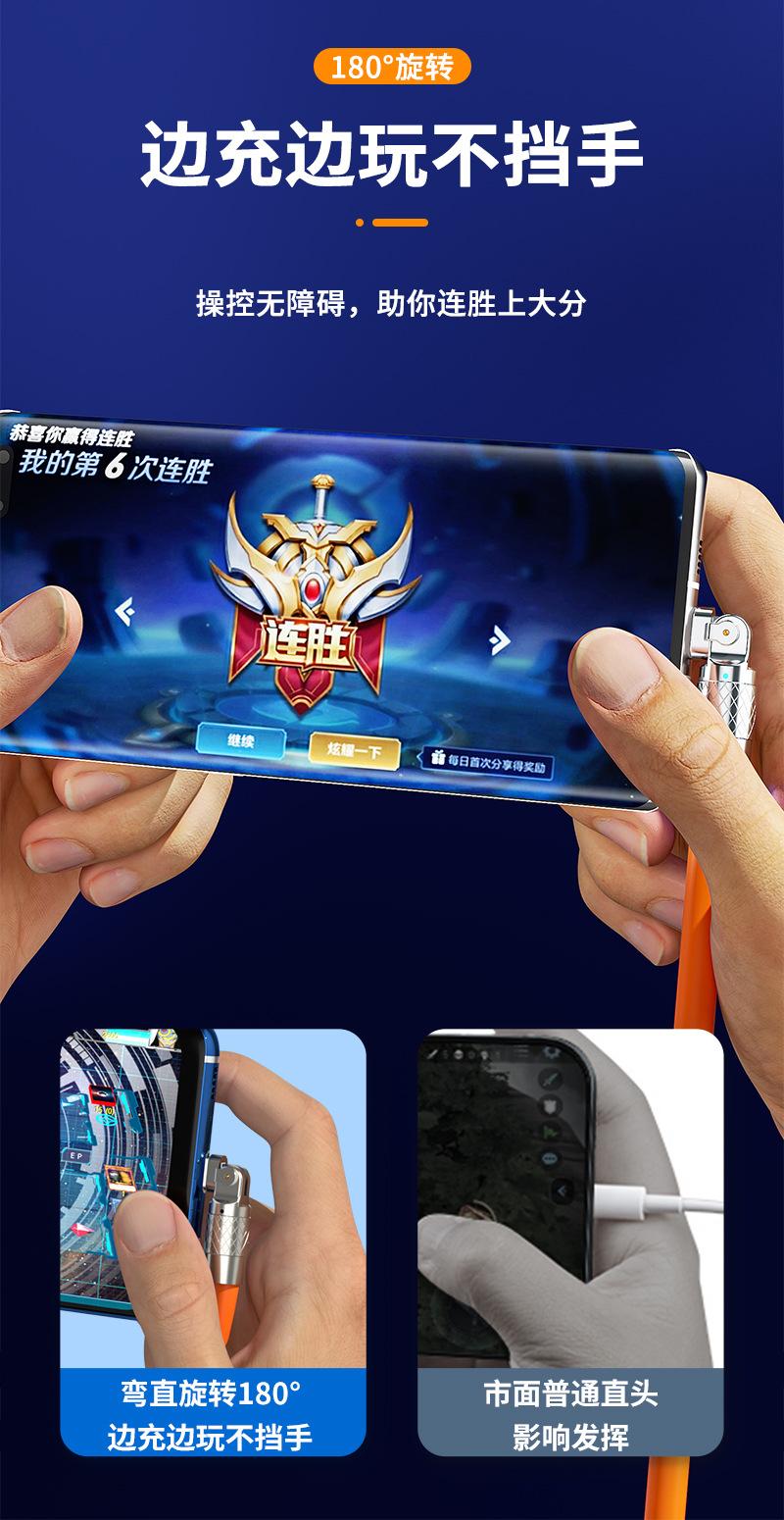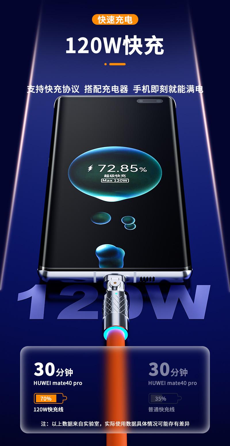 Codo de 180 grados Cable de datos Carga rápida 1M2M120W6A66W Cable para teléfono móvil Material de aleación de zinc Tipo-C