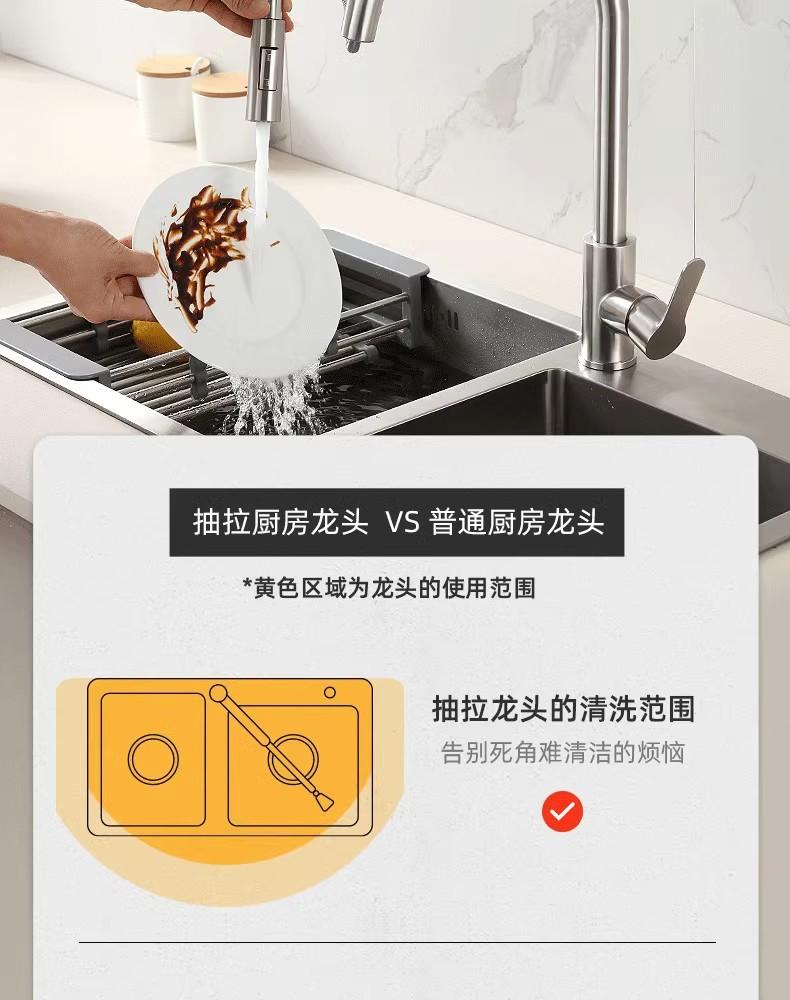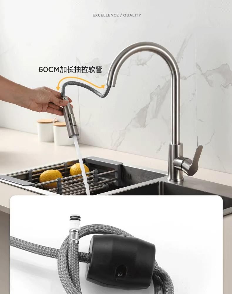 Grifo de cocina extraíble de acero inoxidable, universal, telescópico, para agua caliente y fría, a prueba de salpicaduras, para fregadero de cocina
