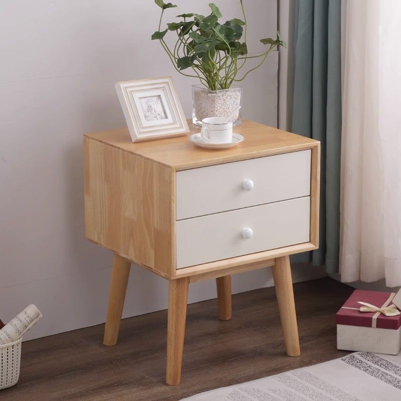 Mesita de noche nórdica de madera maciza, sencilla, moderna, de cuerpo entero, para dormitorio pequeño, color madera, armario de almacenamiento para el hogar, mesita de noche