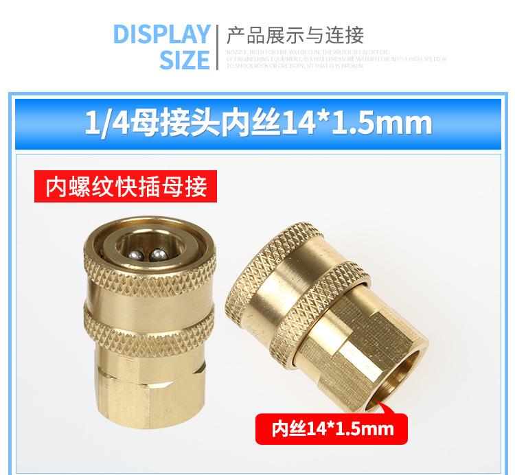Compra Conector de cobre con boquilla de enchufe rápido de 1/4 M14 * 1,5, accesorios para olla de espuma, conector de acero inoxidable, conector suelto para lavadora de coche de alta presión al por mayor en Joom.pro