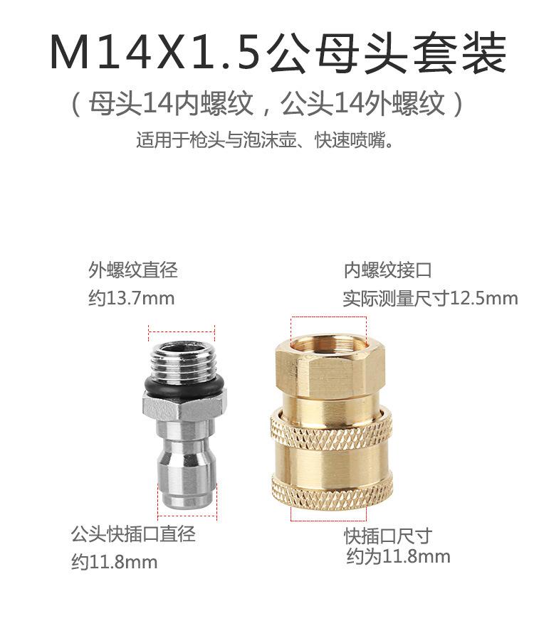 Conector de cobre con boquilla de enchufe rápido de 1/4 M14 * 1,5, accesorios para olla de espuma, conector de acero inoxidable, conector suelto para lavadora de coche de alta presión