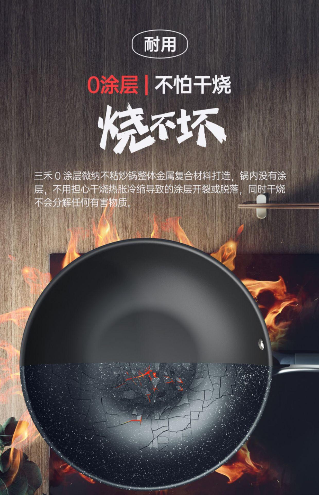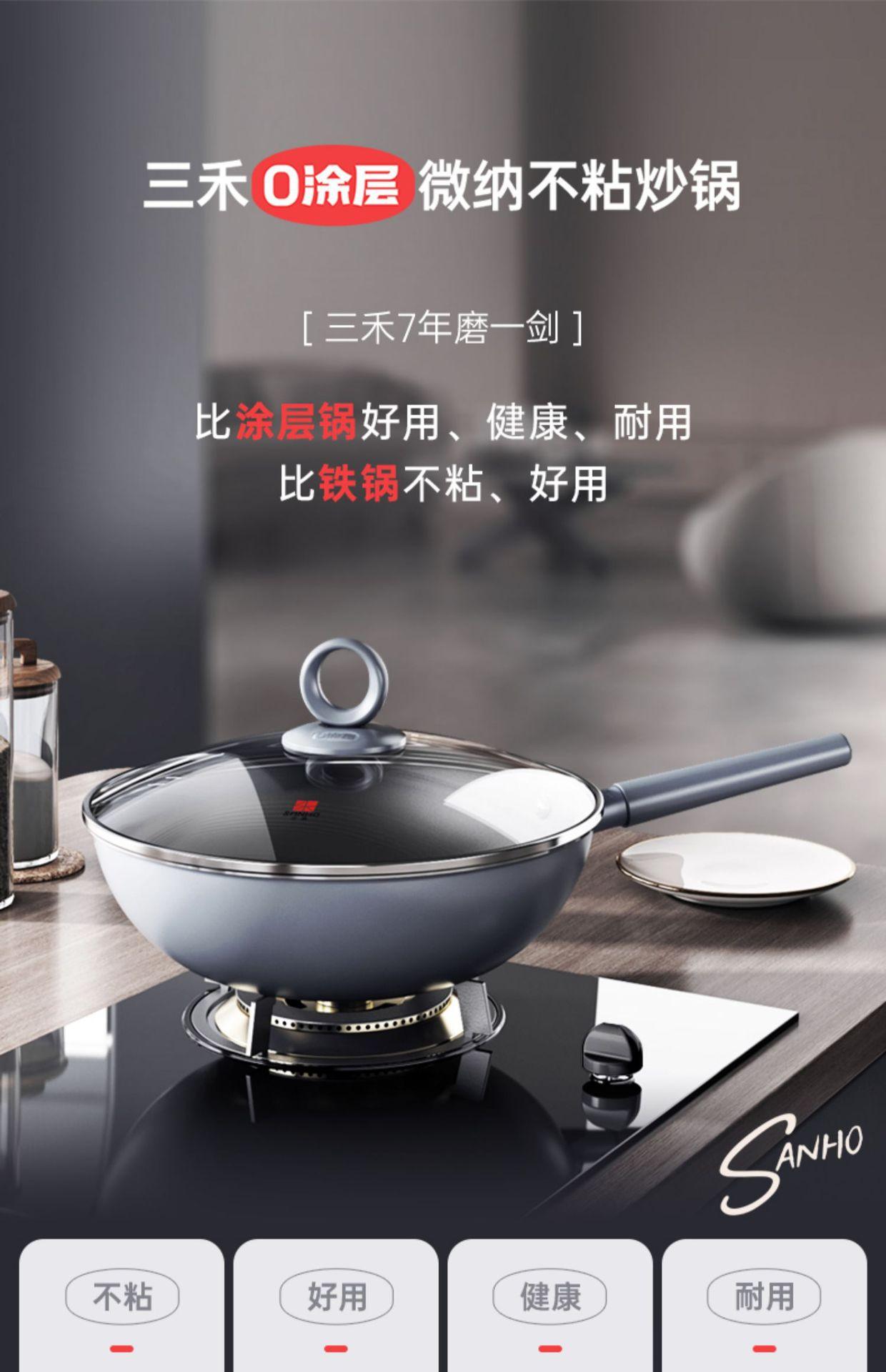 Sanhe 0 wok recubierto sartén antiadherente wok doméstico sin recubrimiento sartén plana cocina de inducción estufa de gas Universal