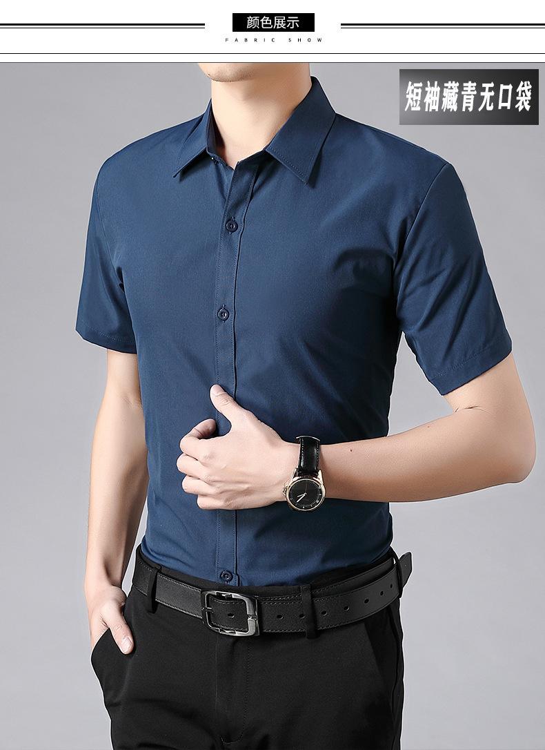 Camisa Casual de Verano de Manga Corta para Hombre de Media Manga Color Sólido para Trabajo de Negocios Profesional Formal Azul Ropa de Hombre