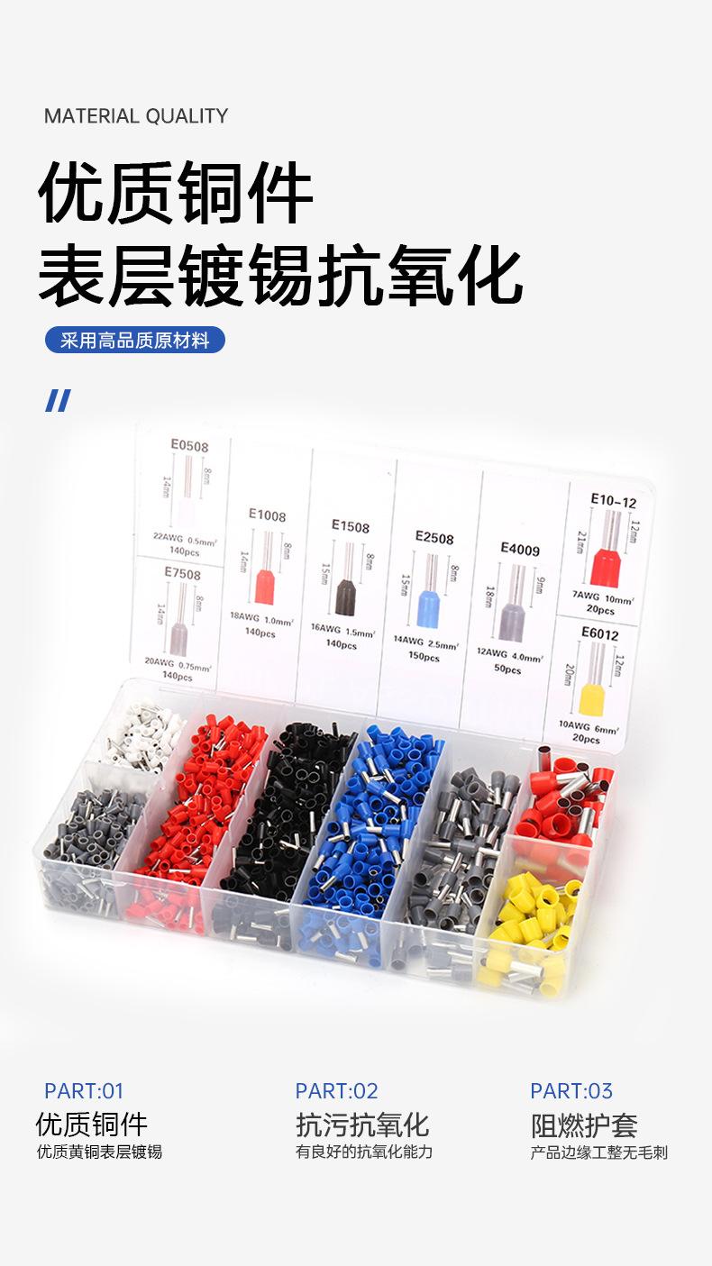 Terminales de cable tipo pin 800 de frontera Terminales tubulares de cobre estilo europeo Conectores de cable Ve Terminal de prensado en frío Juego de terminales de cable Venta al por mayor