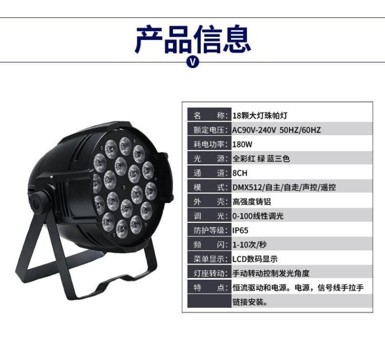 18 luces LED de cubo a todo color de 10 W, cuatro en 1, barra de luces PA, luces de teñido KTV, luces de escenario para bodas y actuaciones