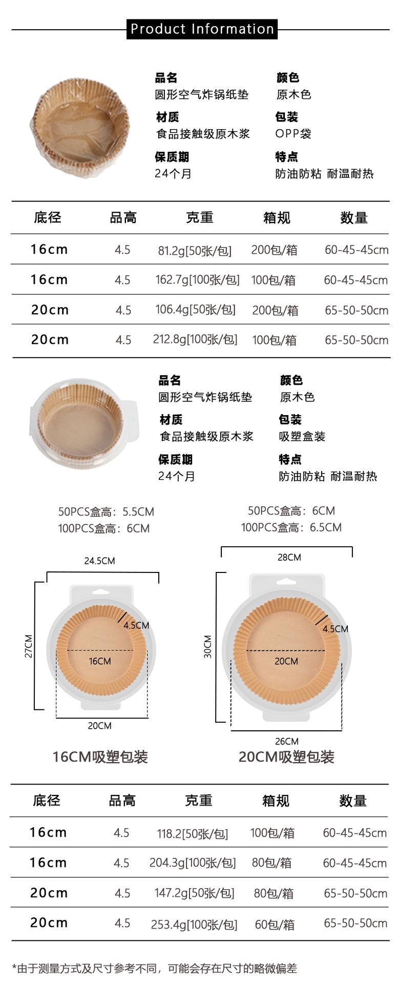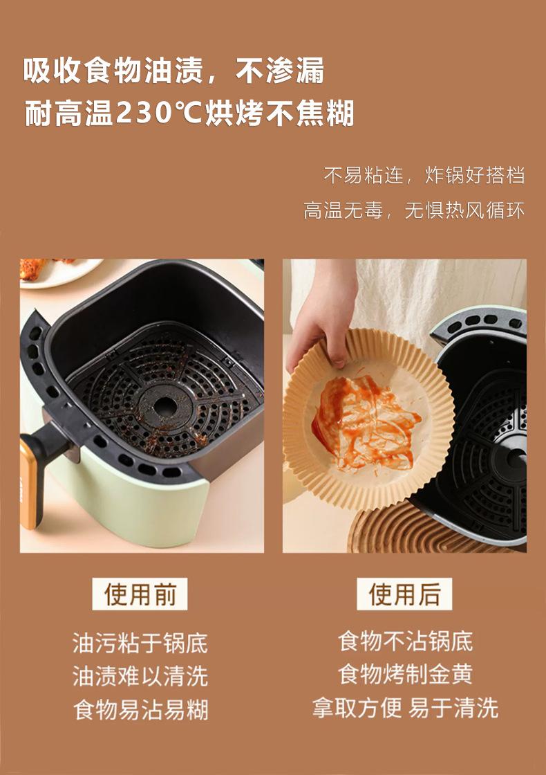 Papel para Freidora de Aire Papel Siliconado Papel de Grado Alimenticio Papel para Hornear Desechable Absorbente de Aceite a Prueba de Aceite Certificado por la FDA Suministro Transfronterizo