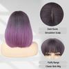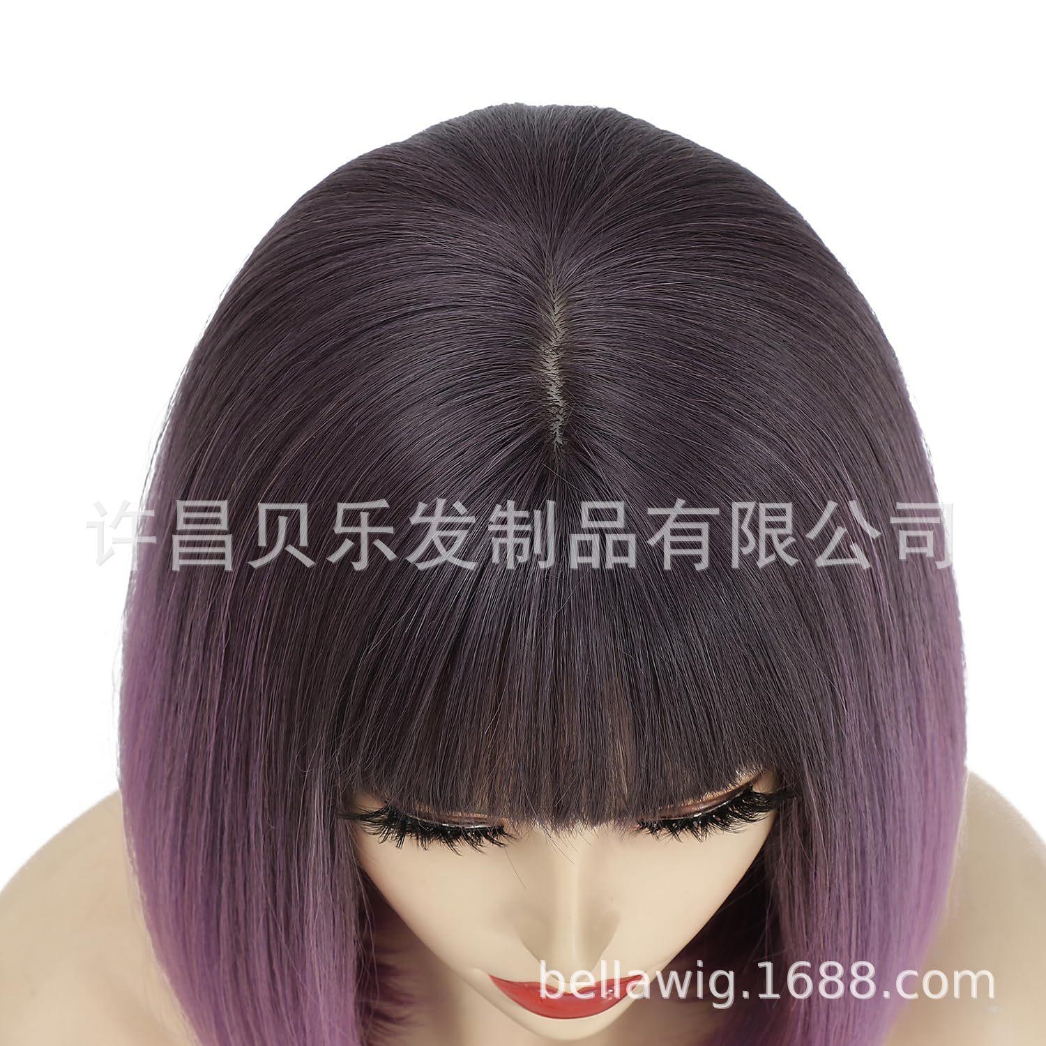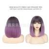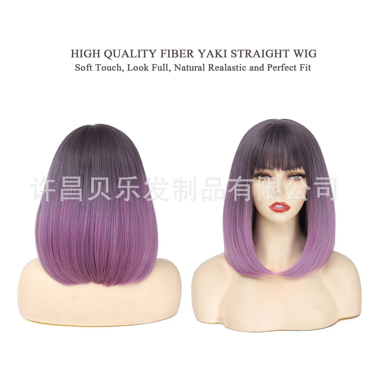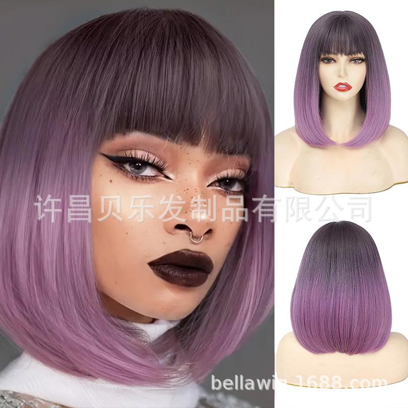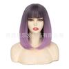 Peluca de mujer europea y americana transfronteriza, cabello corto y liso, degradado morado, flequillo recto, cabeza bobo, peluca de fibra química de seda de alta temperatura, tocado