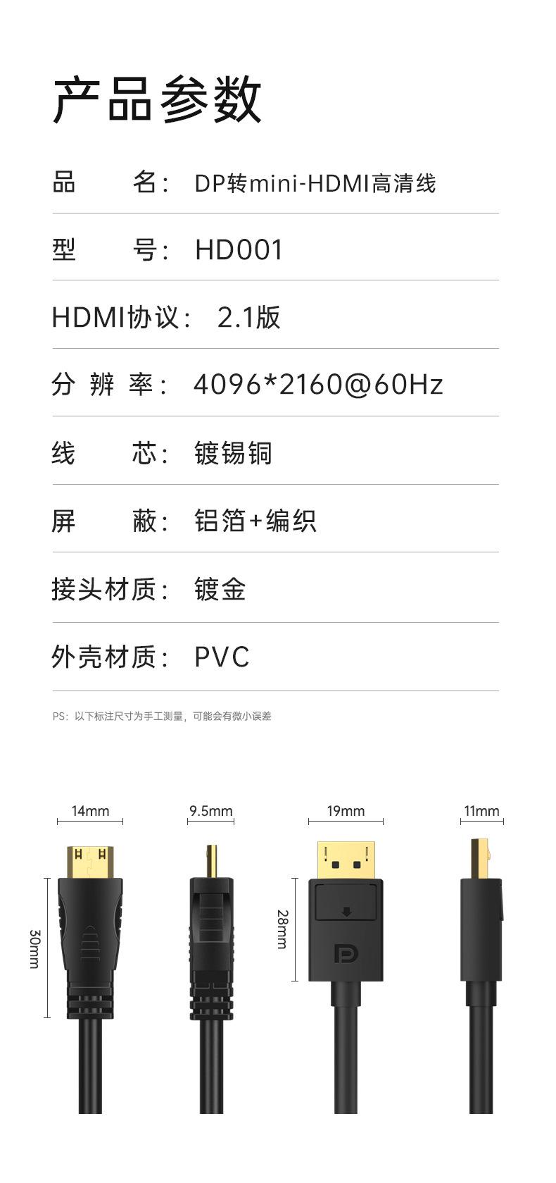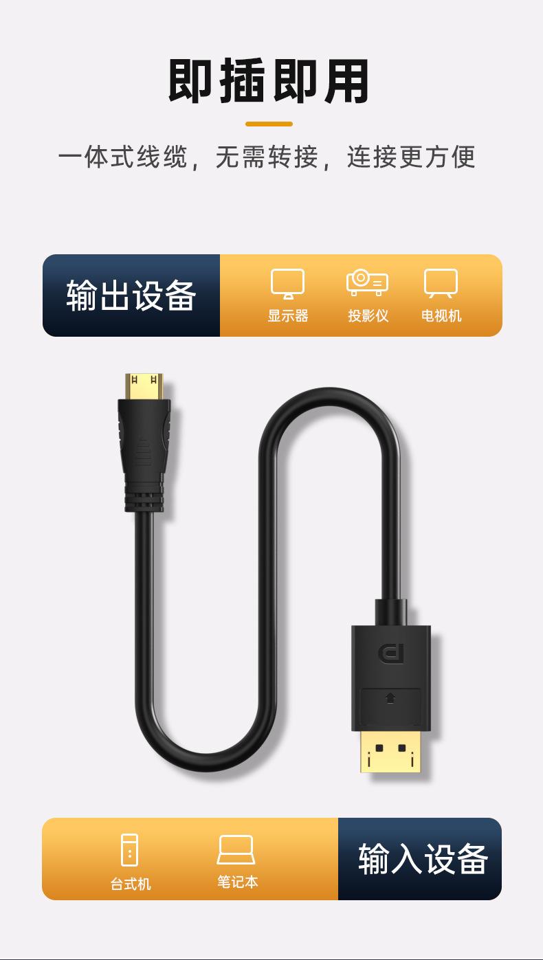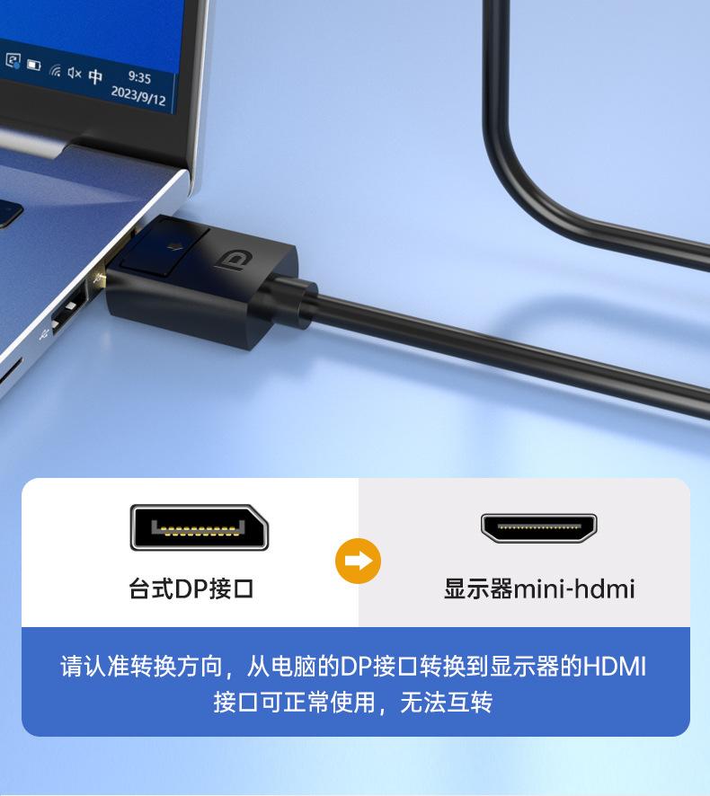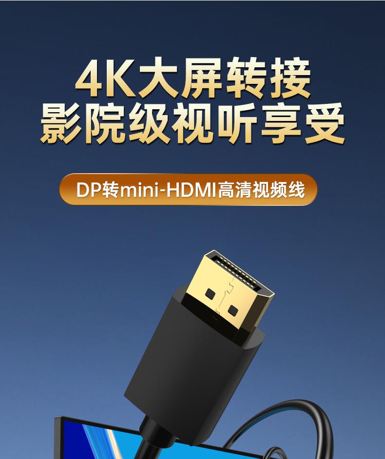 Cable de video para tarjeta gráfica portátil DP a Mini HDMI HD 4K conectado al monitor portátil